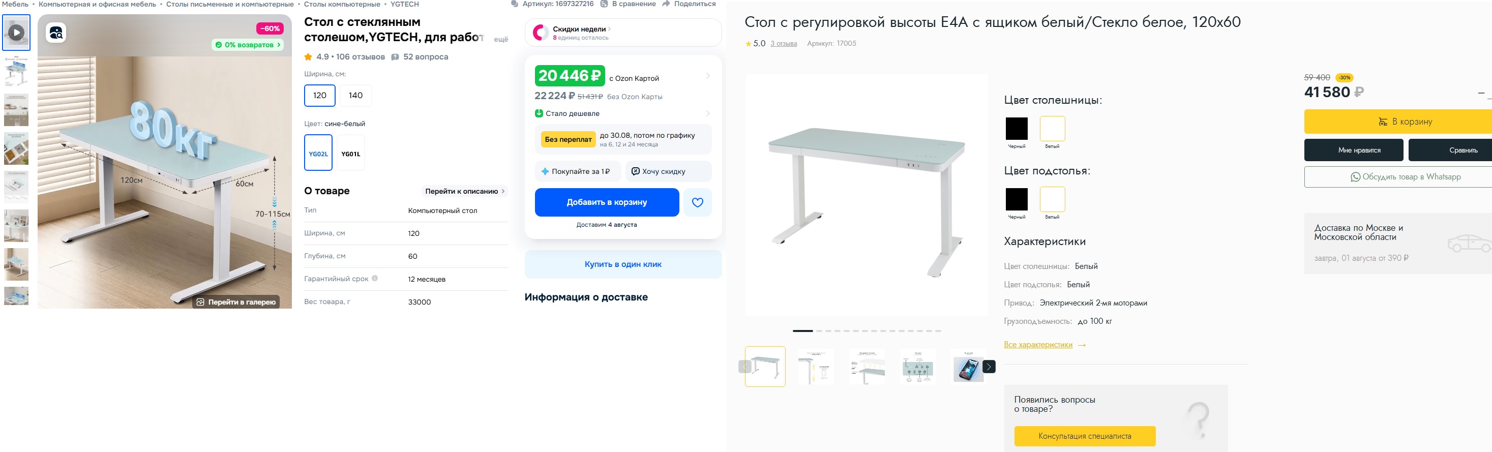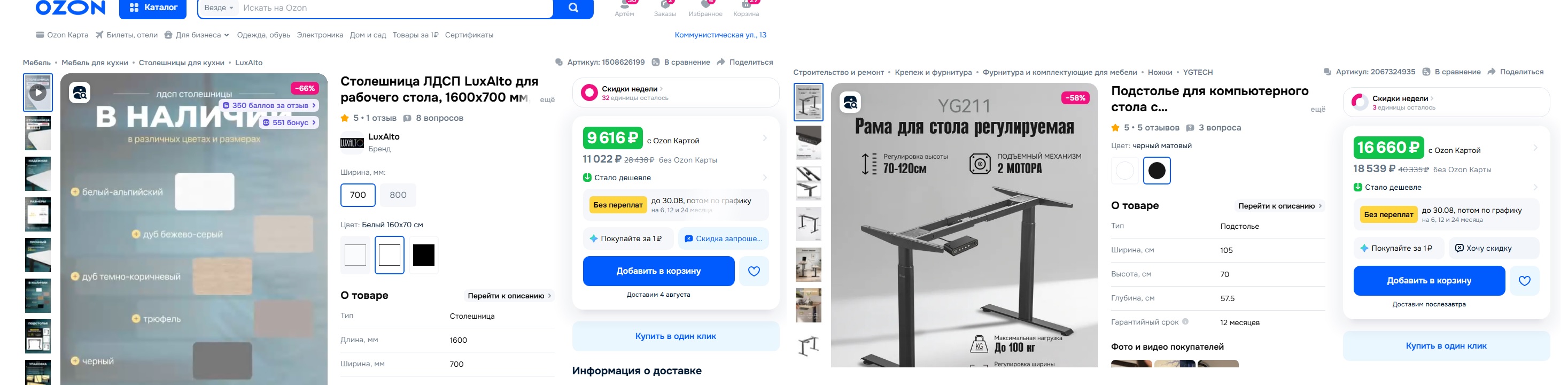 Советую взять отдельно подстолье с электроприводами, отдельно столешницу помассивнее на свой вкус и бюджет и отдельно корзину для кабель-менеджмента если она тебе нужна и подходящих для тебя габаритов. Сборка будет не сложнее чем из готового набора, единственное отличие в том, что отверстия для крепления в столешнице надо будет самостоятельно разметить.