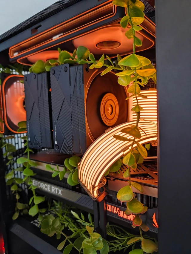 Ладно ты меня убедил Плюс я посмотрел видос от Димона, он говорит, что там пластик дешеватый и это в корпусе за 20к+ И что делать теперь? И что остаётся? Один инвертированный корпус на 180 градусов Лиан Ли? При обычном горизонтальном положении видеокарты, но вентиляторами наверх надеюсь никаких проблем с тепловой камерой не будет?