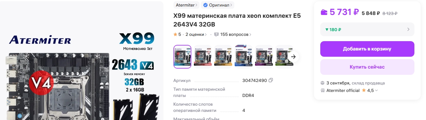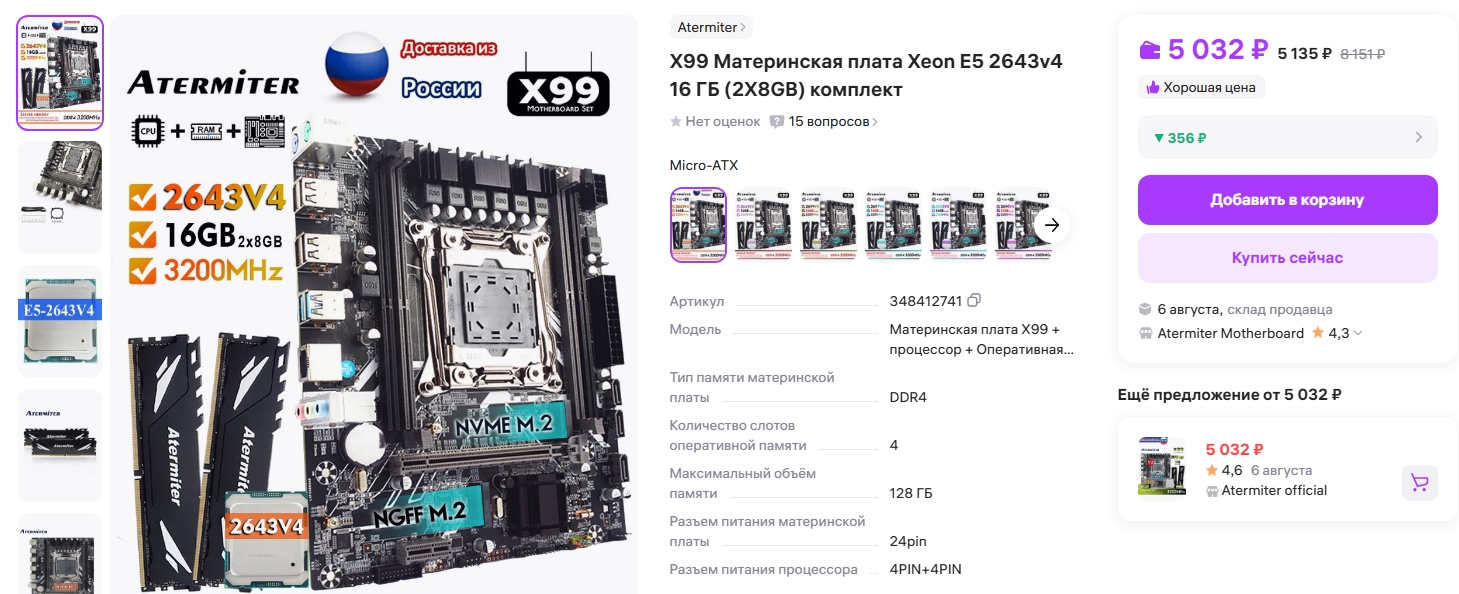 >>7472714 Собирать самому дешевле, но есть ситуации, когда покупка комплекта предпочтительнее, вот 3 варианта. Предпочтительный комплект 2643в4 16гб за 5к, предпочтительный вариант, переплата относительно самосбора +600р. Комплект 2 место 2640в4 16гб за 4к, переплата +300р. Комплект 2643в4+32гб, за 5.7к, переплата относительно самосбора +300р, 3 место т.к. +16гб не так необходимы в контексте бомжесборок, но смысл все таки есть и +16гб выходят дешево, за 700р. Но все меняется, если получится выгодно продать 32гб и купить 16.