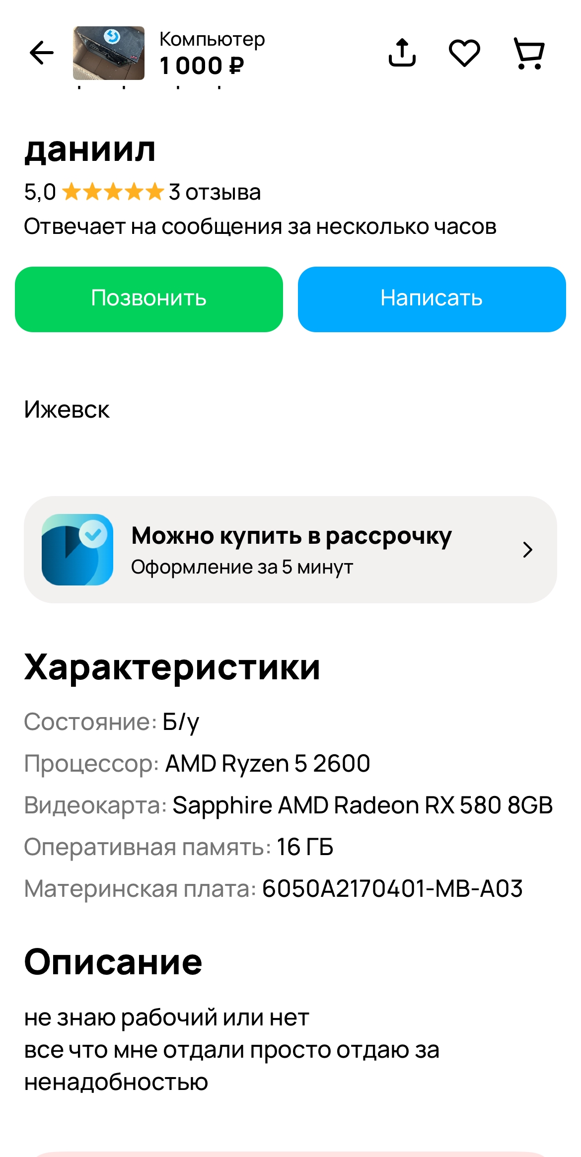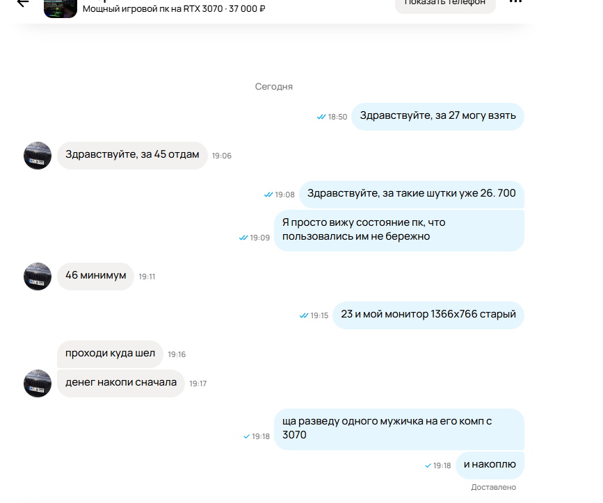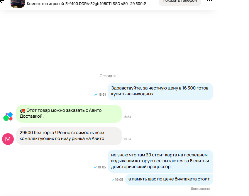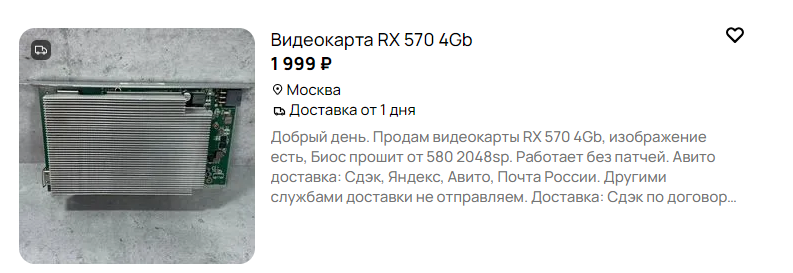 Поясните за авито, никогда там ничего не покупал. Для ультра бомж сборки присмотрел видеокарту, пока думал она стала в резерве, через день она опять стала доступна к покупке, но уже немного дороже и так несколько раз на день меняется статус. Это продован что-то мутит? Как вообще там покупать? Мне желательно без обкашливания вопросиков просто купить с авитодоставкой.