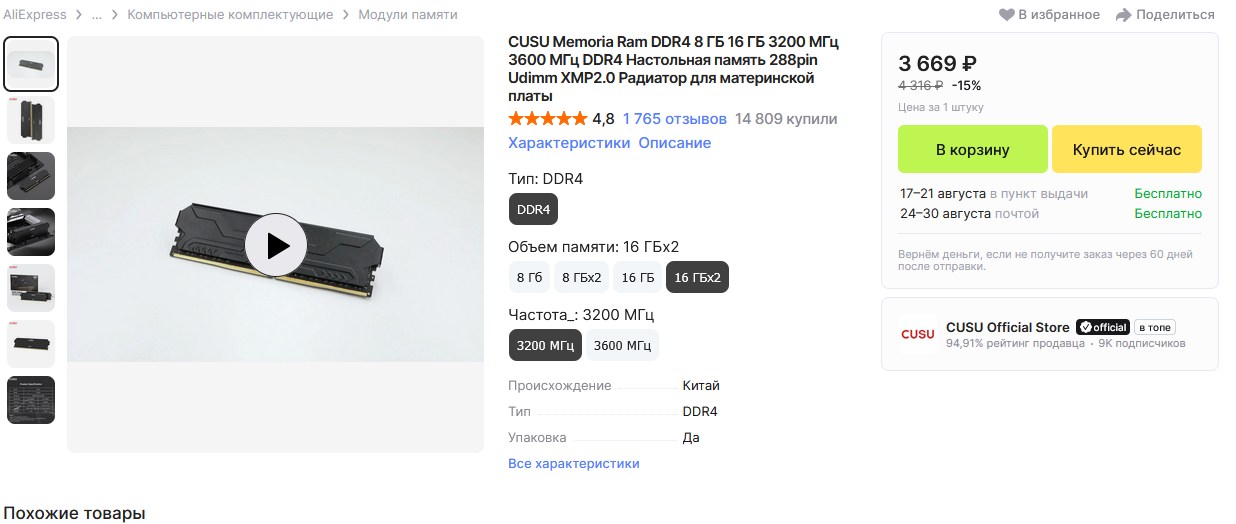 >>7476332 Там опытный вояка, максимум тыщу-две скину, а подобные сборки с меньше памяти от 35 в городе идут. А отдельно все покупать и самому собрать, впадлу у меня ни инструментов, ни времени учиться.