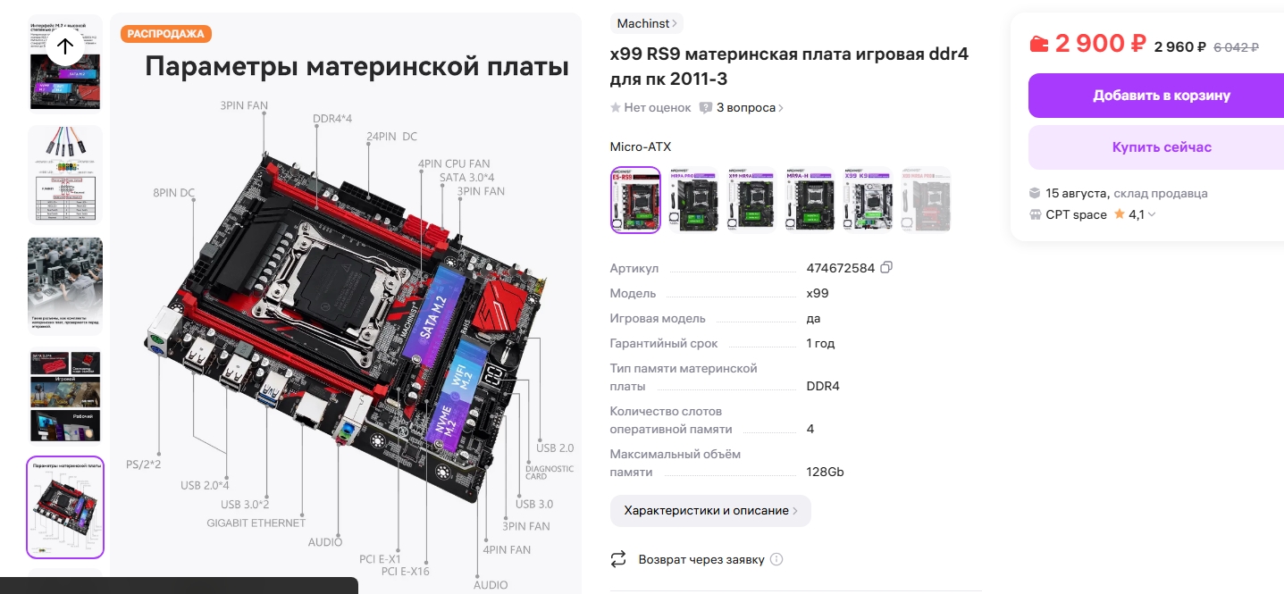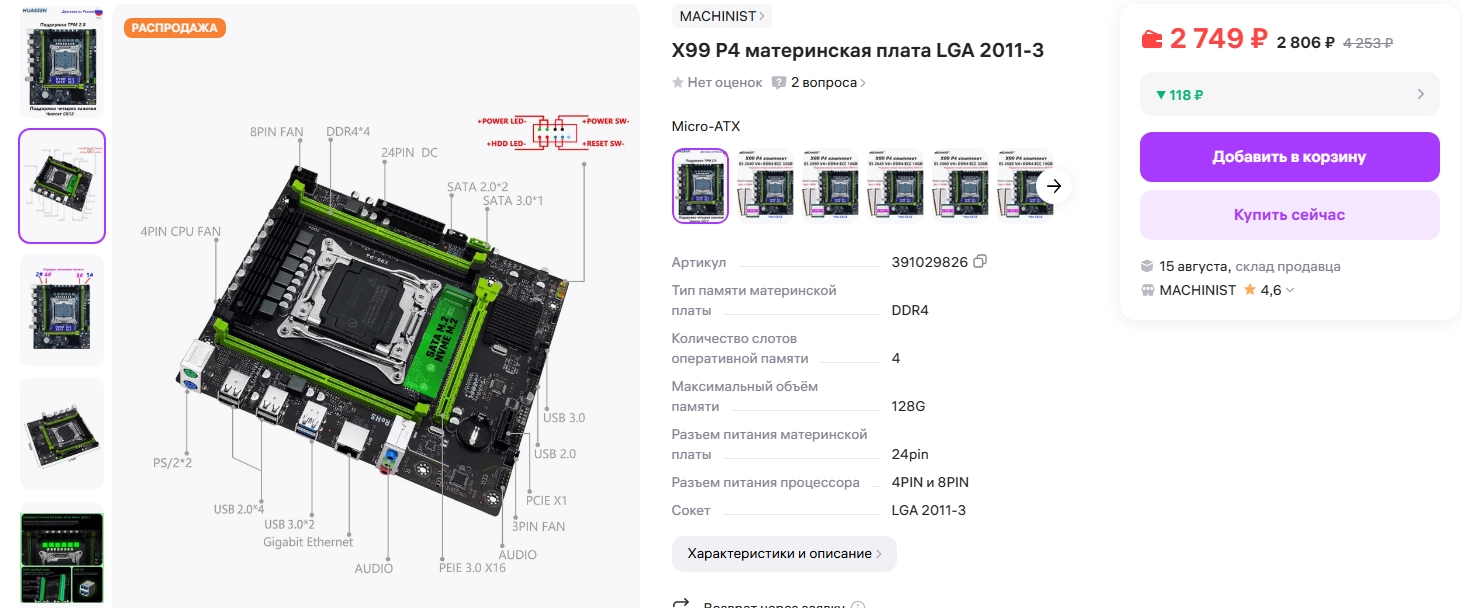 >>7473566 >материнка за 2100р Такой мусор я не рассматриваю. Норм мамки - с 4-х каналом на х99/с612, а не на десктопном/мобильном мусоре, минимум 4-мя слотами озу - стоят в разы дороже