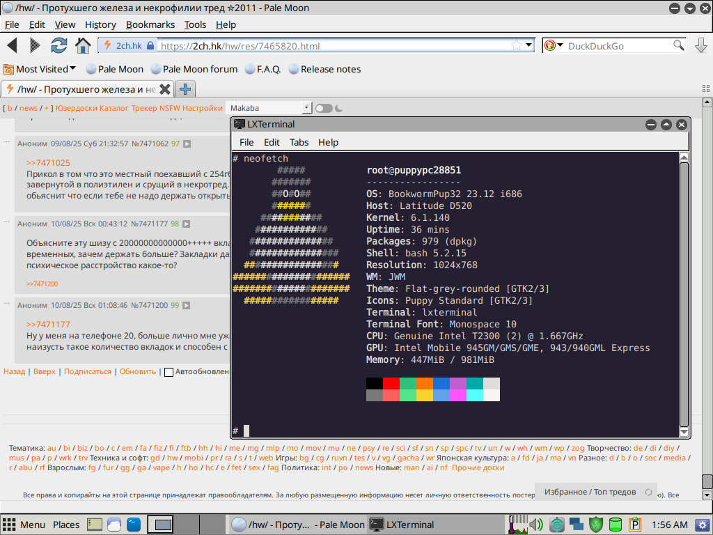 >>7471319 А ведь 12 лет назад я этим ноутом пользовался каждый день. Купил как рефаб за 40 даларов, сидел на ХР-шке и играл в ВоВно на минималках в 40-50 фпс и был доволен. По итогу имеем отвал HDD и термоцемент на охладе (80-90 градусов при мало-мальской нагрузке). Но простенькие сайты без графической дрисни в PuppyLinux ворочит нормально, хоть и вайфай не работает.