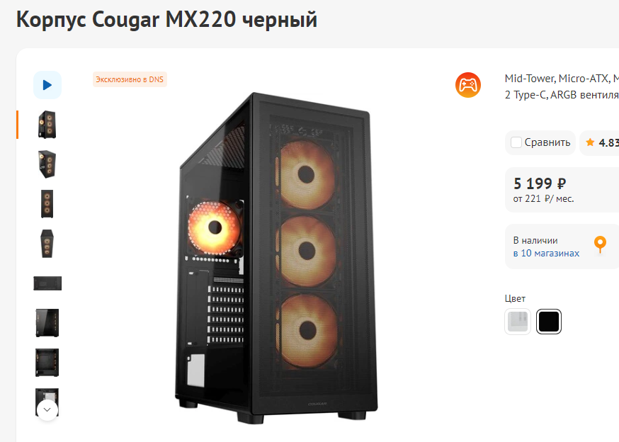 До 10000р: Montech AIR 1000 Lite Zalman Z10 PLUS Cougar Duoface/Airface/Uniface LIAN LI LANCOOL 216