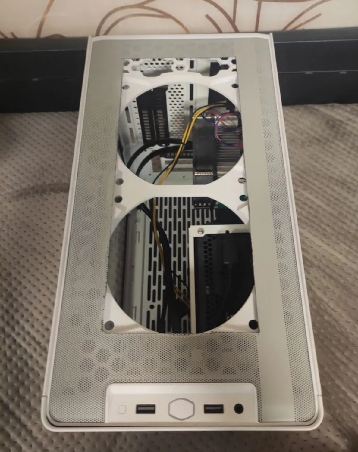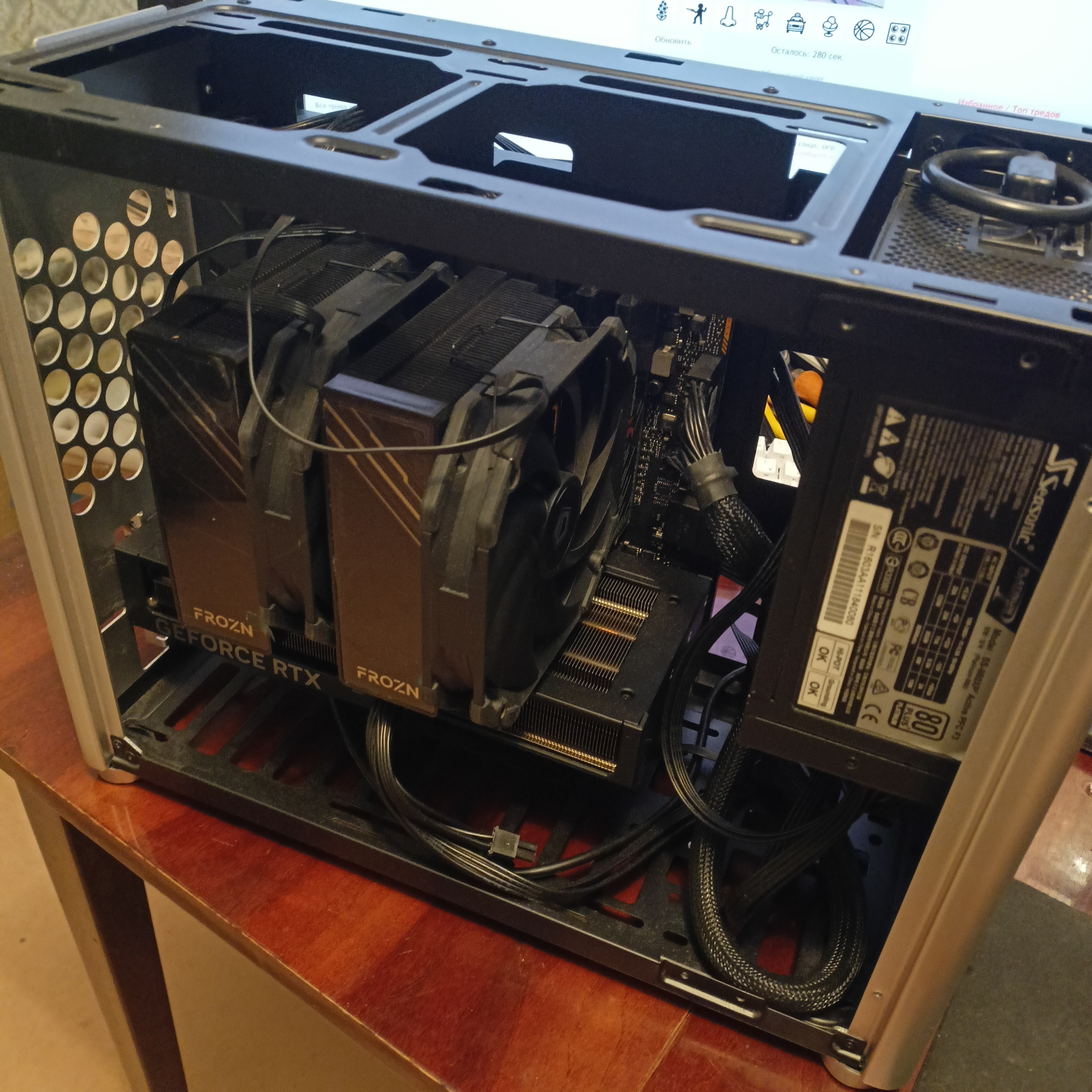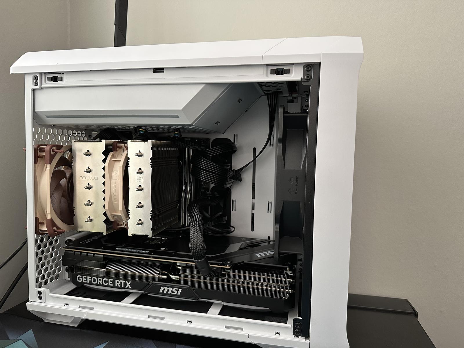 >>7475677 Атх-мамка влезет, 5090 влезет если съёмная дисковая корзина, даже NH-D15 на проц встанет и будет закрываться боковая стенка. Проблема в другом - это непродуваемые гробы, где 120мм на вдуве дисковой корзины и 80мм-ишачок на выдуве с проца. Тут действительно надо дрелью делать перфорацию на крыше и боковой стенке с установочными местами для нормальных вентиляторов чтобы оно обдувалось.