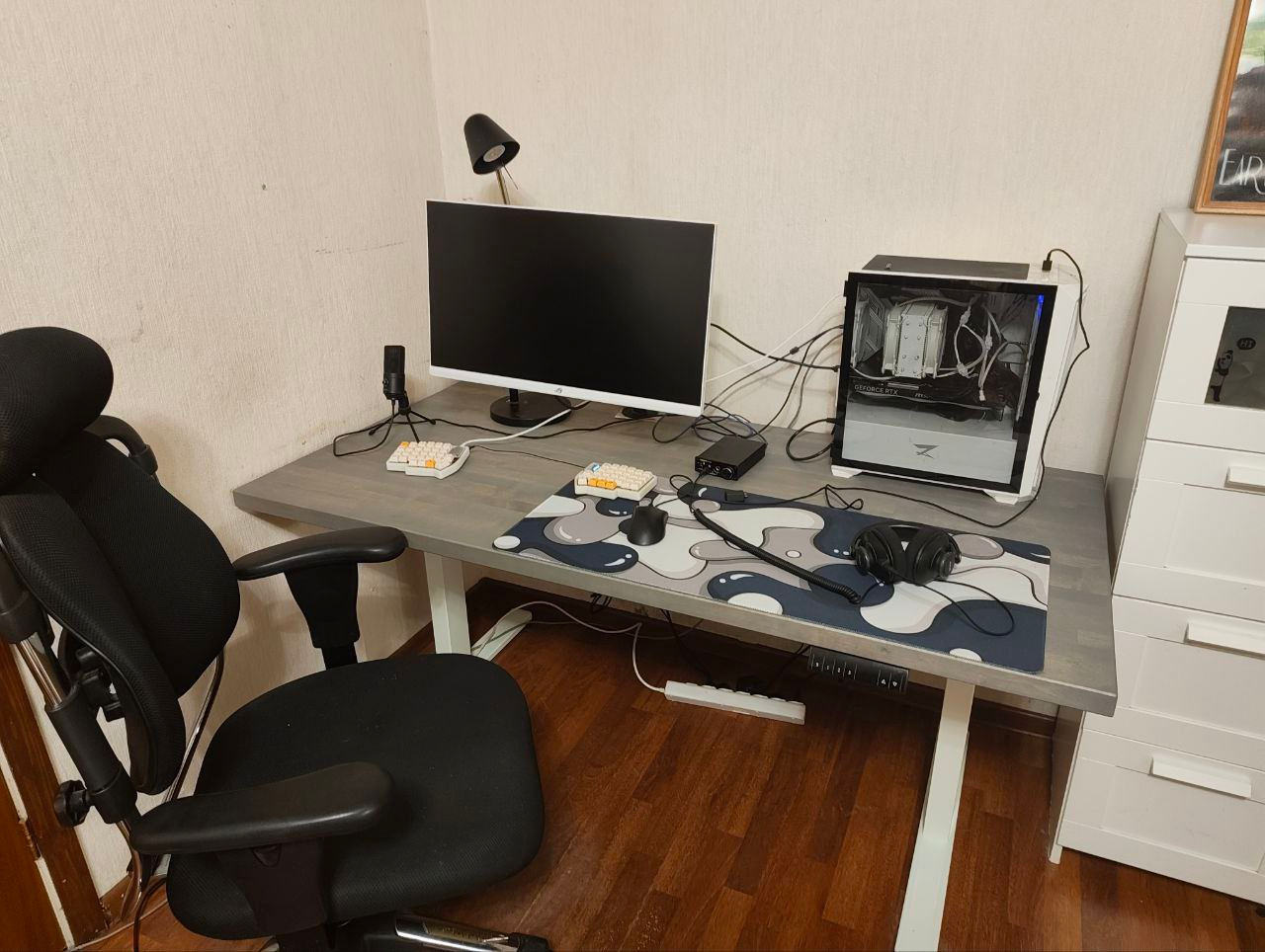 Какой стол выбрать? Зависит от вкусов. Есть сотни разных столов в разных исполнениях, разной ценовой категории и из разных материалов. Заходишь в любой мебельный магаз (типа Hoff) или на маркетплейс, выбираешь, заказываешь. Стол усредненного сыча - из лдсп/мдф размером 80x160см, чтобы хватило места и барахло свое по столу разложить, и мониторы расставить, и жрать за ним. Собрать такой можно изи самому: столешница на маркетплейсах стоит 2-5к, подстолье (ножки) стоят 2-3к. В сумме выходит меньше 10к за стол. Если есть деньги, советую сделать стол посолиднее: покупаем массив дерева (цена зависит от породы), покрываем лаком/морилкой/краской, покупаем более устойчивое подстолье. Наиболее подходящие породы дерева для стола (имхо): дуб, бук, ясень, лиственница. В сумме можно уложиться до 20к за такой стол. Идеальный вариант, когда есть деньги и время - скрафтить стол самому, с полочками, xyeлочками, ящиками и т.д. Это практически не энергозатратно с учетом того, что эскиз будущего стола и его размеров можно накидать в паинте/автокаде, а потом в любой столярке или в мастерской Леруа напилить их. После этого остается только прикрутить всё шуруповертом на уголки. Идею для дизайна стола проще всего подсмотреть на тех же сайтах мебельных магазинов или у анонов из прошлых тредов.