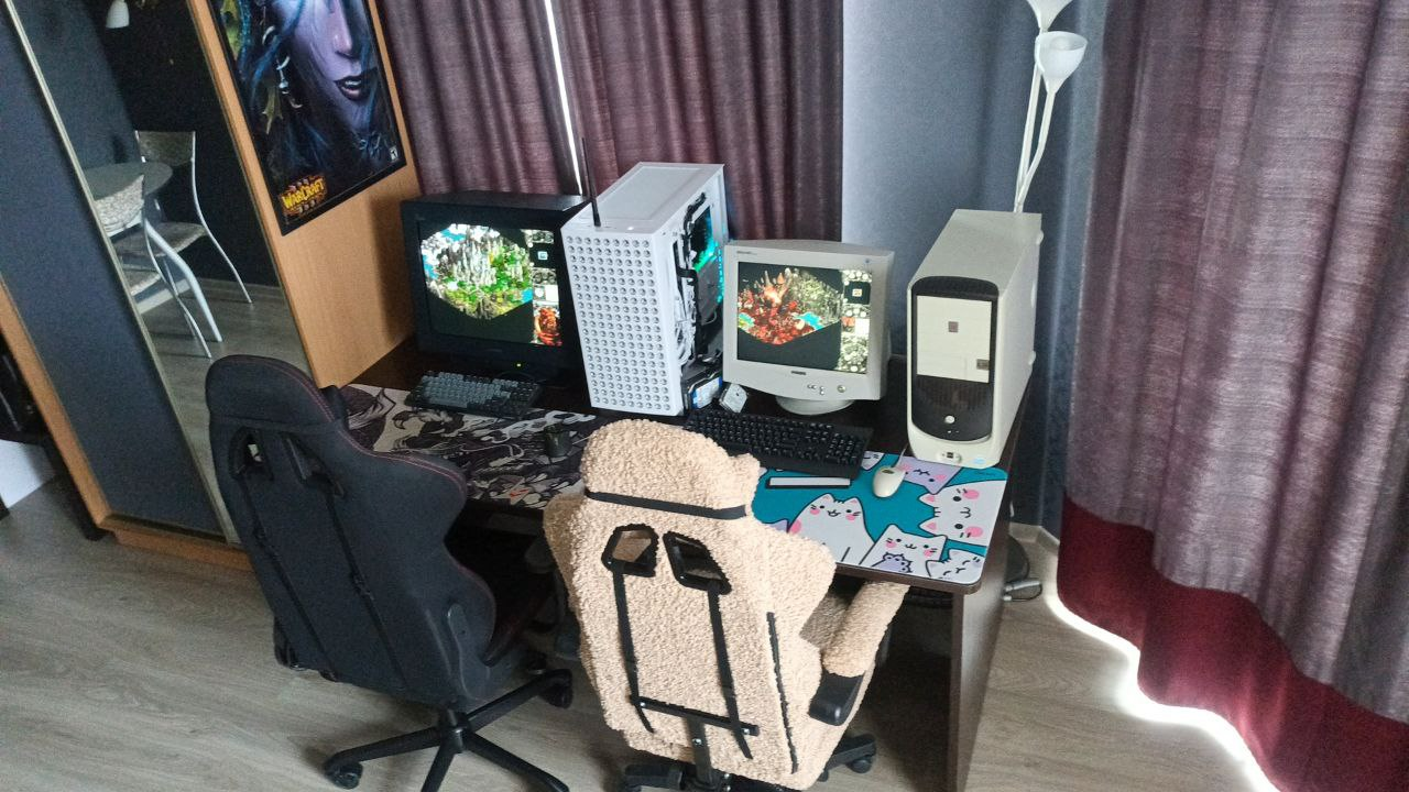 >>7486941 Потому что захотел. Основной комп у меня в другой комнате, там всё хорошо и без того: 11600к, 7800хт, 32gb ram и 2tb nvme. Мне хватает под всё с запасом. Коврик заказал новый, жду. Старый ушёл под те компы.