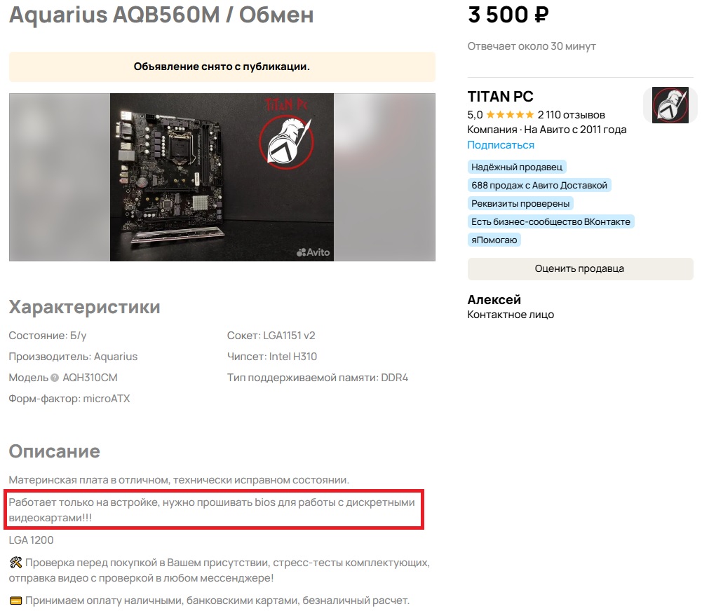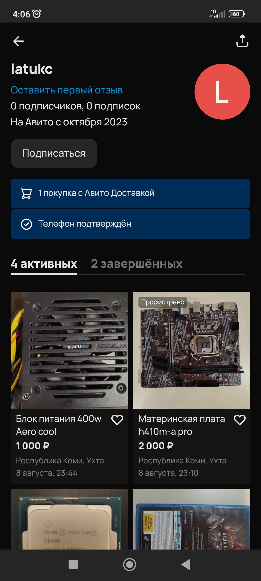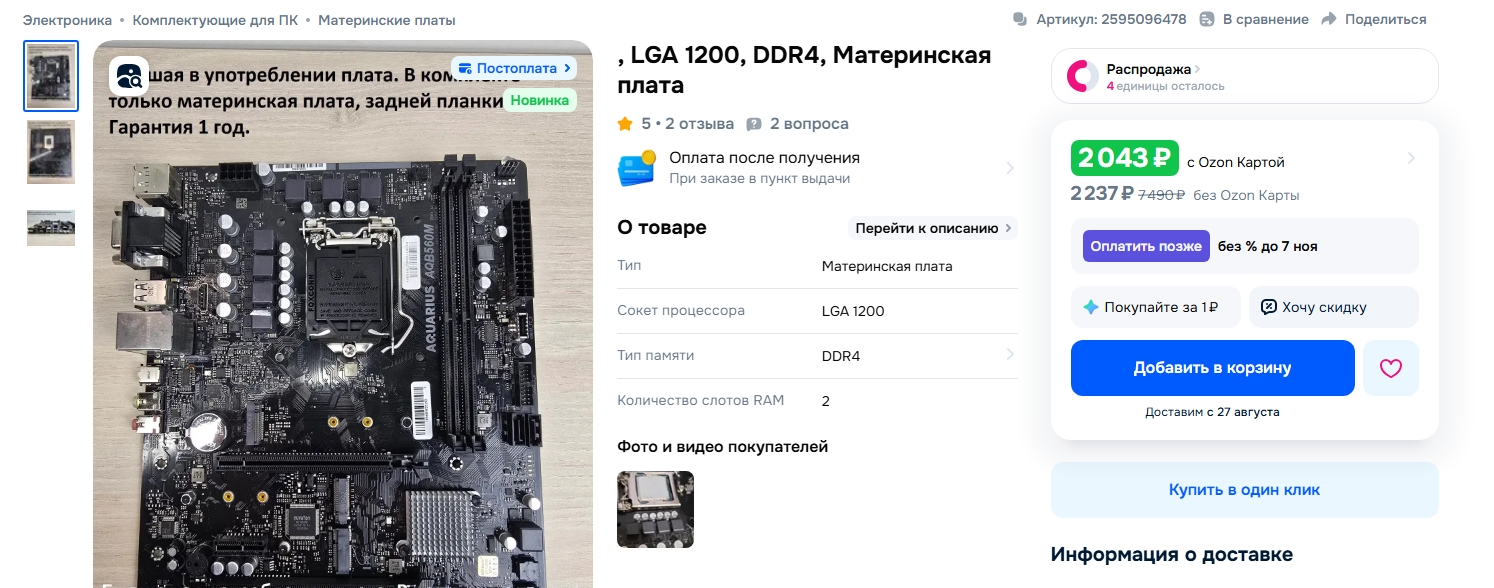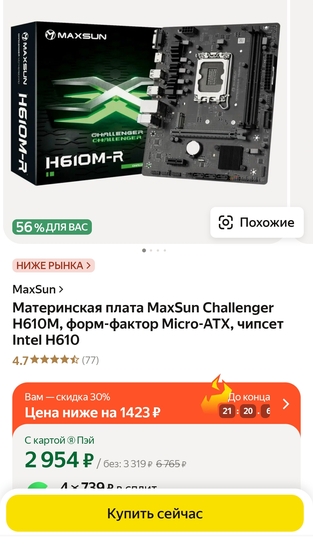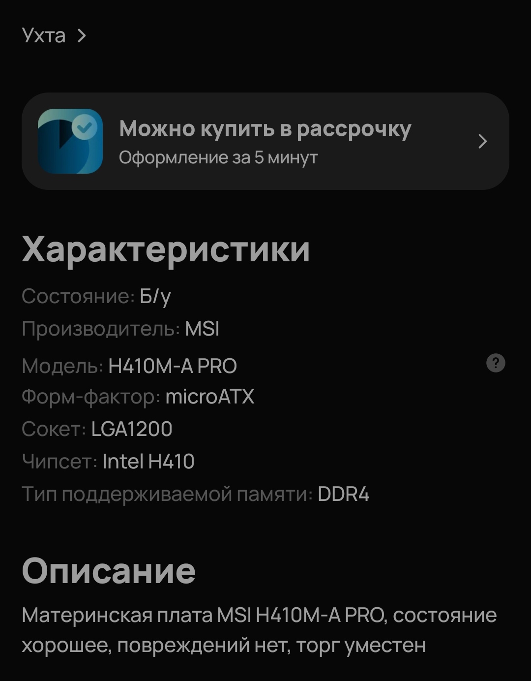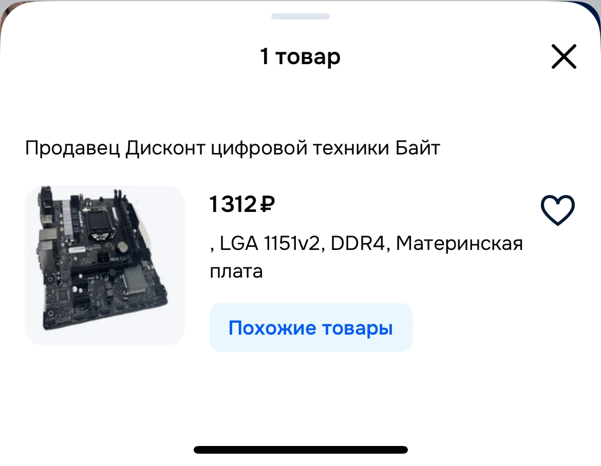 >>7478464 >прямо щас можешь залезть на авито и убедиться >10400f 4к Какой же ты пиздабол, вот за 5200р купили, следующий нормальный лот начинается от 5.5к + доставка 300-600р. И это я еще не дошел до самого пиздеца, покупки материнки через авито. Второй момент,ты сравниваешь сборку с авито с готовой сборкой за 5к с ВБ, если сравнивать с так же с сборкой на авито, то комплект выйдет в 4к. И какой еще кулер за 1к для 50ватного зиона? Короче, сделай доброе дело, не пиши свою хуиту в треде.