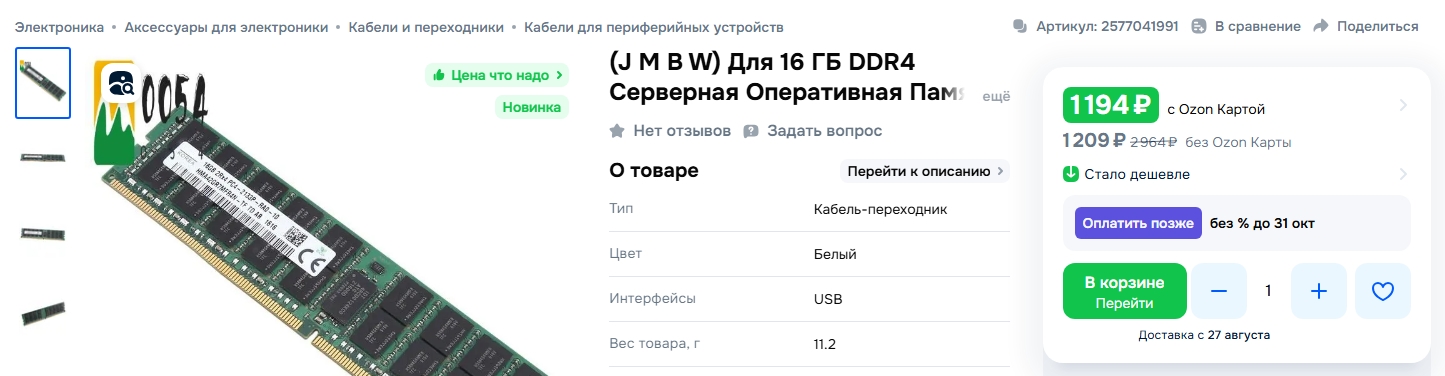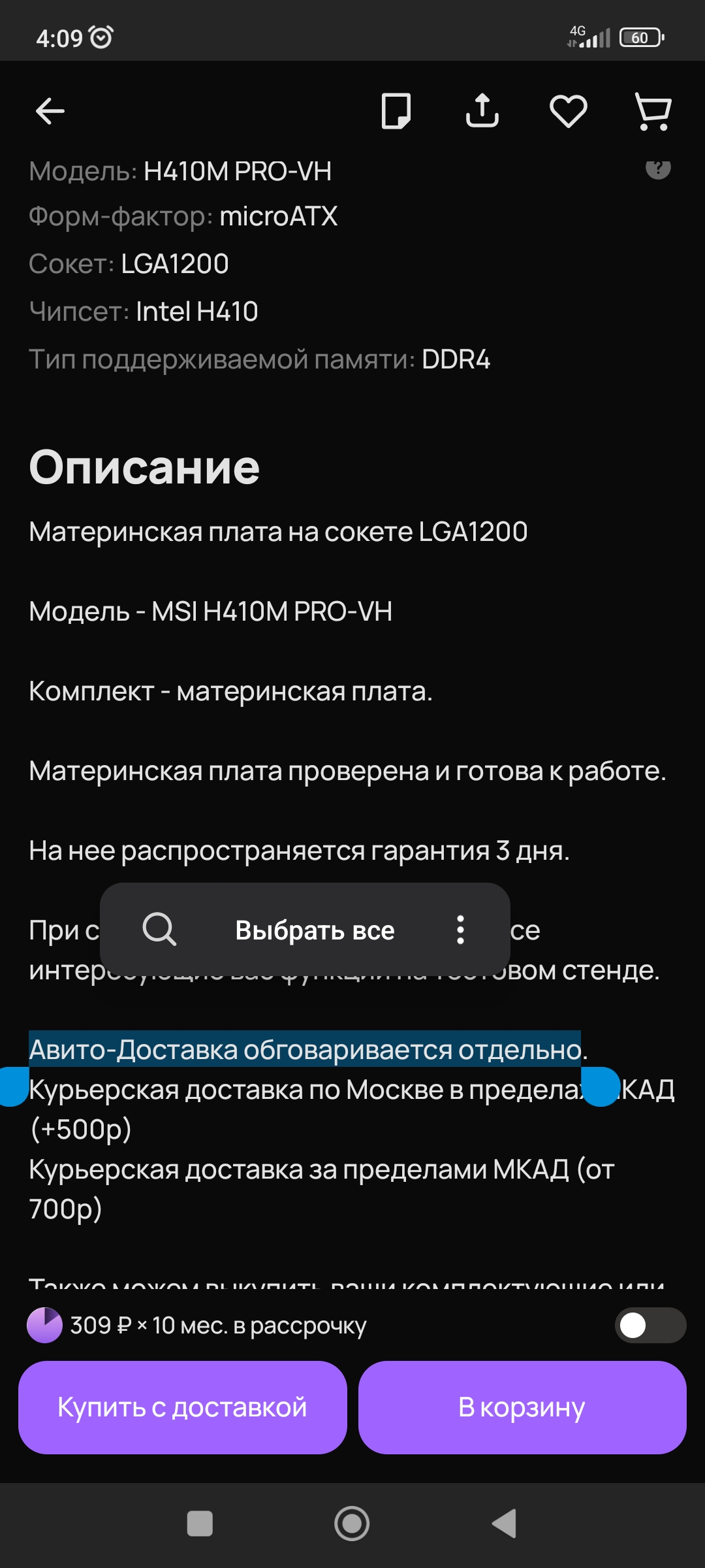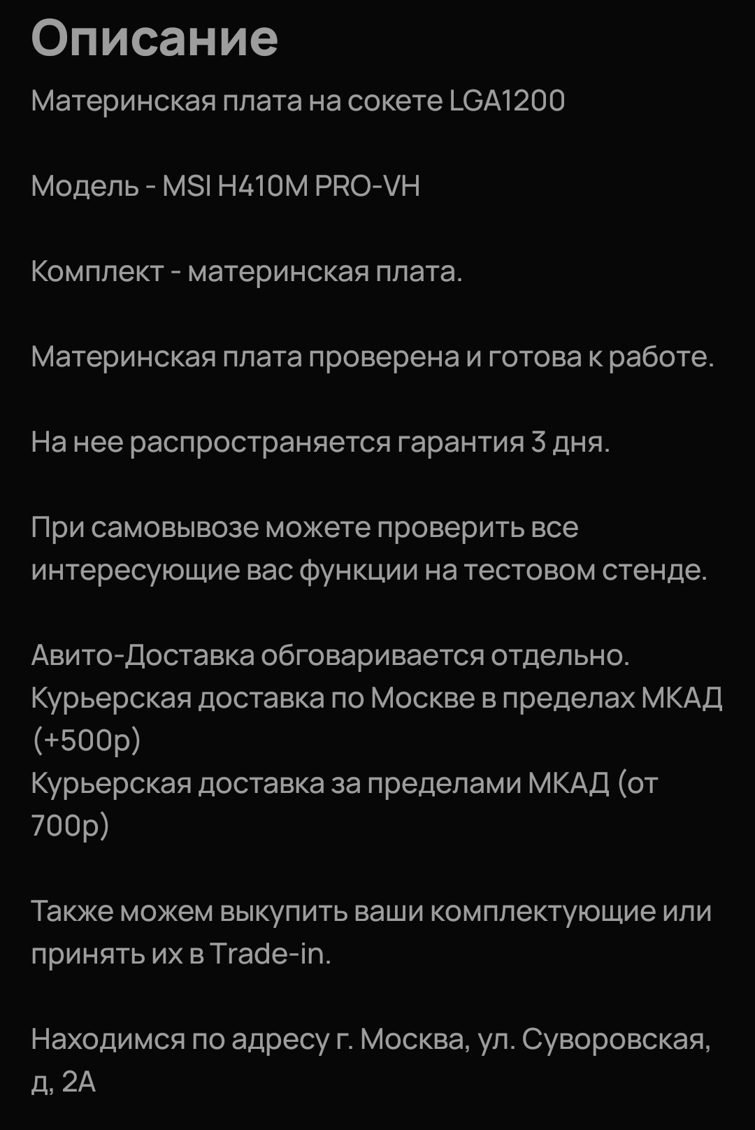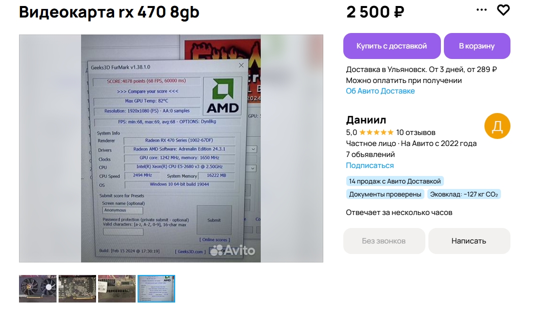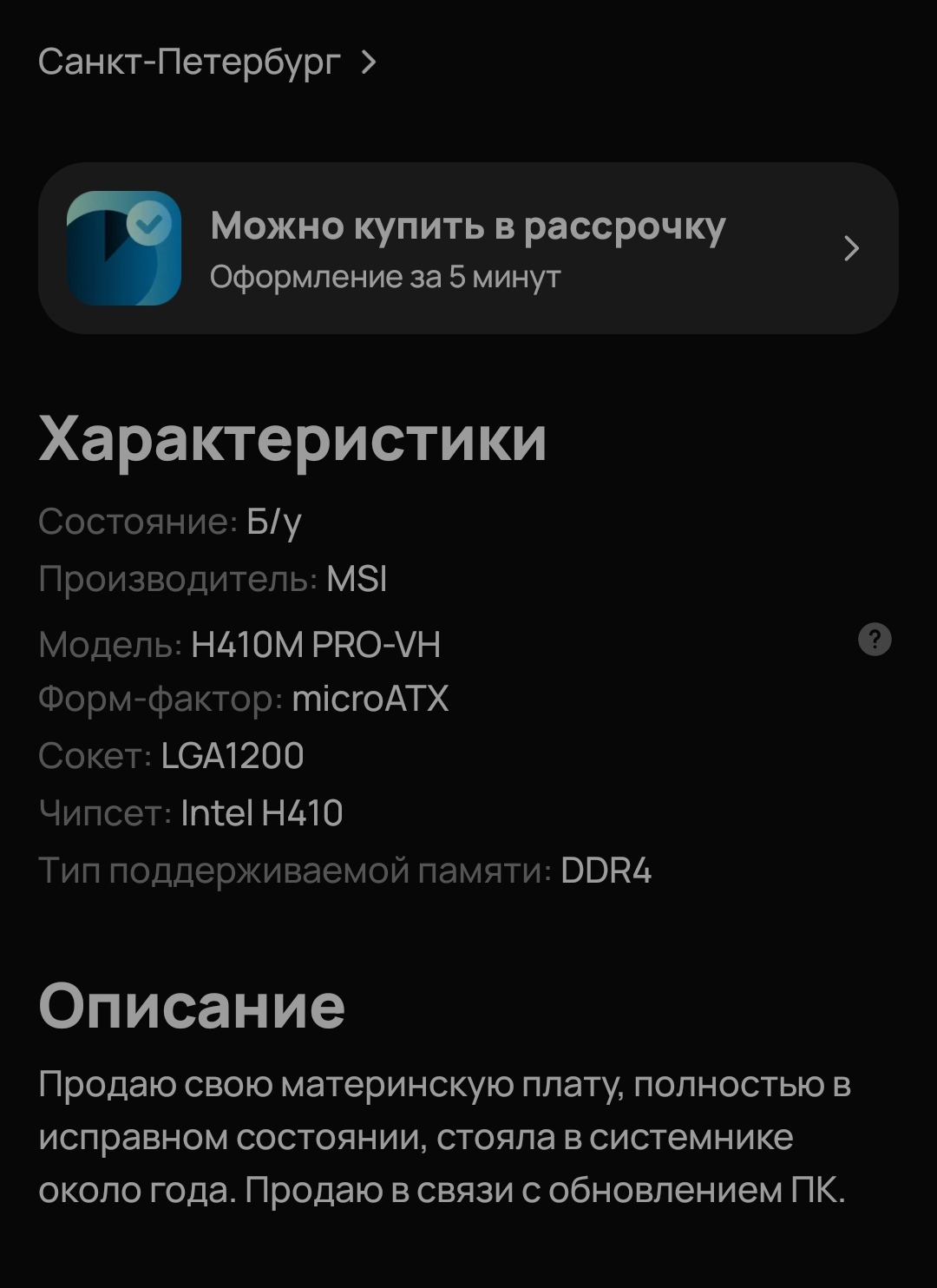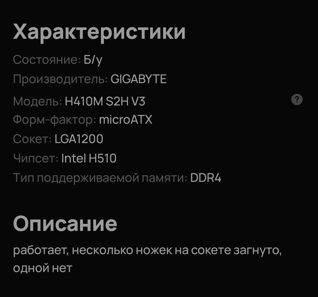 >>7478464 >прямо щас можешь залезть на авито и убедиться >10400f 4к Какой же ты пиздабол, вот за 5200р купили, следующий нормальный лот начинается от 5.5к + доставка 300-600р. И это я еще не дошел до самого пиздеца, покупки материнки через авито. Второй момент,ты сравниваешь сборку с авито с готовой сборкой за 5к с ВБ, если сравнивать с так же с сборкой на авито, то комплект выйдет в 4к. И какой еще кулер за 1к для 50ватного зиона? Короче, сделай доброе дело, не пиши свою хуиту в треде.