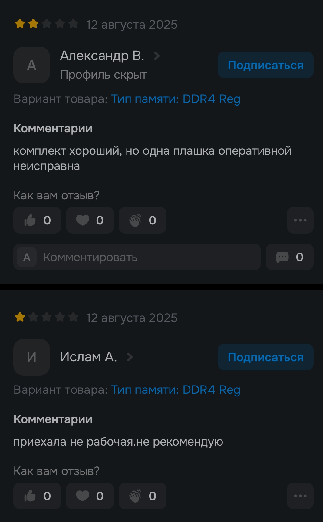 >>7478979 > когда нужно рыскать по авито неделю. Какую неделю, что ты мелешь. Я назвал обычные рыночные цены. Просто нашел продавана с отзывами не совсем говна и заказал. > Пикрил1 это мой аккаунт Вообще посрать, ты несёшь хуету. Мне на авито за овер несколько сотен попалось пару раз скама. И то только потому, что там сомнительные лоты были, просто рискнул. > То ли дело покупка у нонеймов через авито-доставку. Отзывы. Попросить сделать видео. Приехать лично, если в твоём городе. > 5к с ВБ и 4к если покупать на авито. Ещё бы китайский кал отвальный с авито брать. Нормальный вариант это 10400ф, его же в шапку можно сейчас как бомж варик для более менее актуалочки. Все остальные варики с косяками для этого, или китайский понос, или сс150, который дороже, ещё и с кофимодом, или уже слабые, или уже сильно дороже 12400 и прочие. Так что да, если руки дойдут перекатить - то надо основным вариком его сделать. А не всякую парашную узкожопую паль из подвалов.