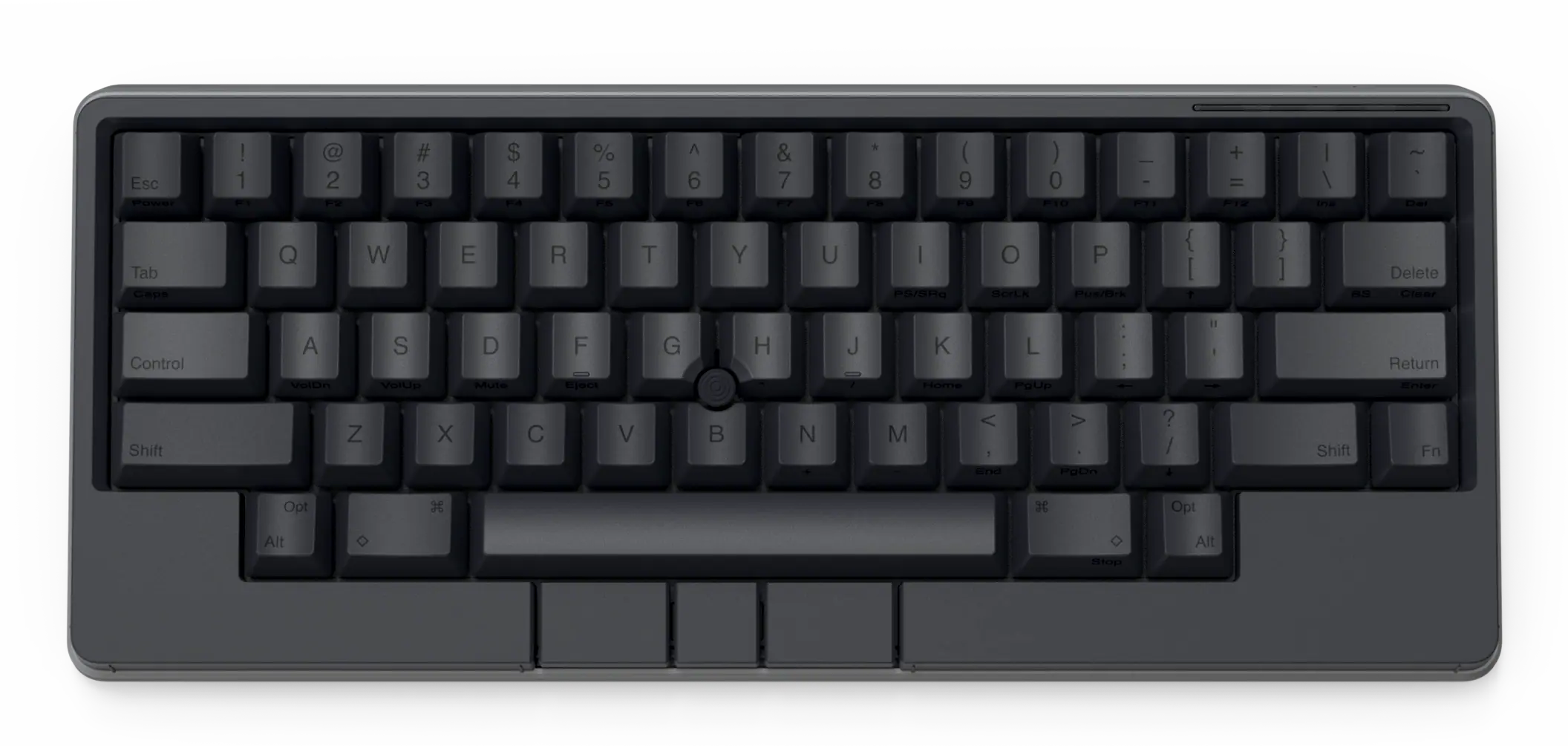 Обожаю эту штуку. В отличие от других 40%, тут кириллица целиком влезает, ну и вообще очень приятная тактильно штука. Брусок под килограмм весом, гаскет маунт, очень кайфовые свитчи Zebra. Есть via. А есть еще 40% с полными рядами?