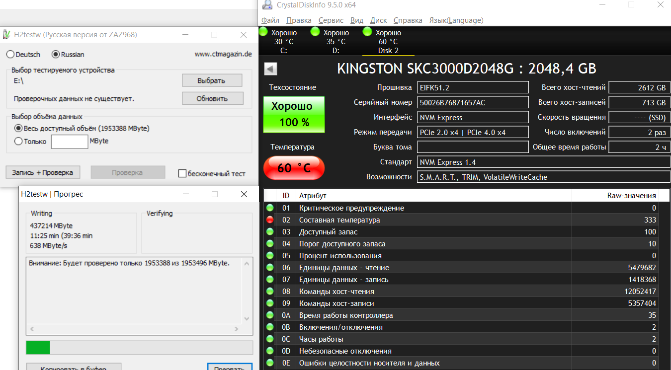 Сижу охуеваю. Есть ссд от кингстона 2тб, в какой-то момент начал отьебываться из-за температуры. Не троттлить, а именно доступ к файлам терялся от нагрева. Радиатора не стояло т.к. он у меня использовался как файлопомойка там просто не было задач которые должны бы его греть (можете посмотреть на пик2, за все время эксплуатации записано 4тб данных за год работы, на деле даже меньше т.к. это после проверок разных).