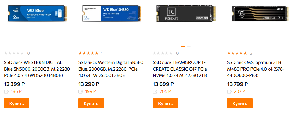 Сообщай в вопросе бюджет, нужный объём, интерфейс подключения и формфактор, сценарий использования, модель материнской платы.