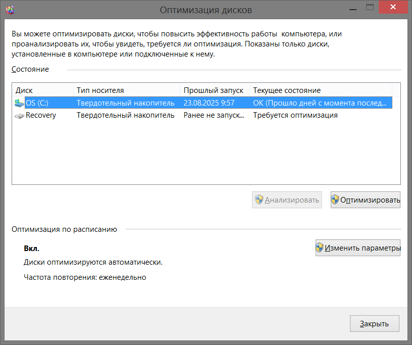 >>7506061 После ручного запуска оптимизации, рекомендуется просто оставить комп в покое на пол часика, чтобы ssd начал реально что-то делать со своей флешкой.