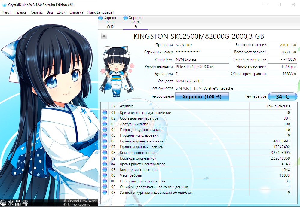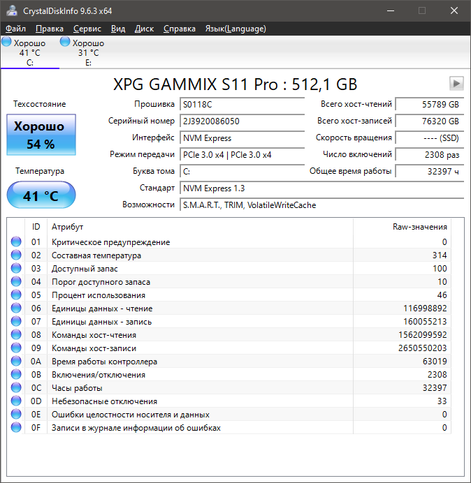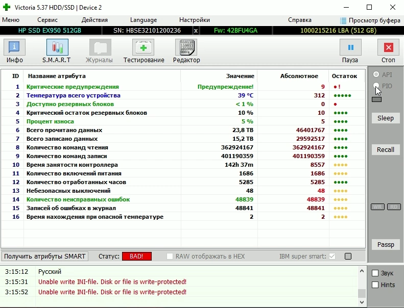 При вопросах о состоянии ссд по смарту переключай программу Crystal DiskINFO в десятичный режим! (ОП-пик №2)