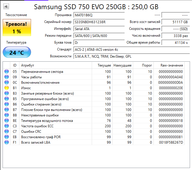 >>7496790 Попробуй в другой сата-порт переключить. Или другой кабель попробовать. >>7495354 >часть ресурса израсходована с завода Не может быть такого, просто б/у продали под видом нового, что не редкость