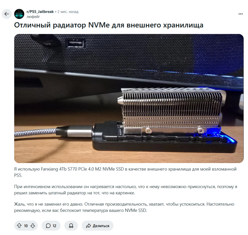 Поохуевал, принес ссд домой, купил радиатор (пик3). Поставилил, залил 100гб файлов, начал проверку самозаписью, копируя их. И охуел. За 5-7 минут температура датчика поднялась с 36 до 70! нахуй градусов (скриншот на пике 1, тут температура уже подспала, второе значение не менялось вообще с момента как подрубил видимо это наивысшая зафиксированная но тут хз). С радиатором, хотя на моих глазах та же нагрузка без радиатора за 15 минут даже до 60 не догрела. При этом скорость самозаписи была той же что на проверке на стенде: 1гб/сек. И радиатор работает отлично, обжигающе горячий, то есть температуру на себя он принял. Подобный раскаленный радиатор материнке не навредит часом?