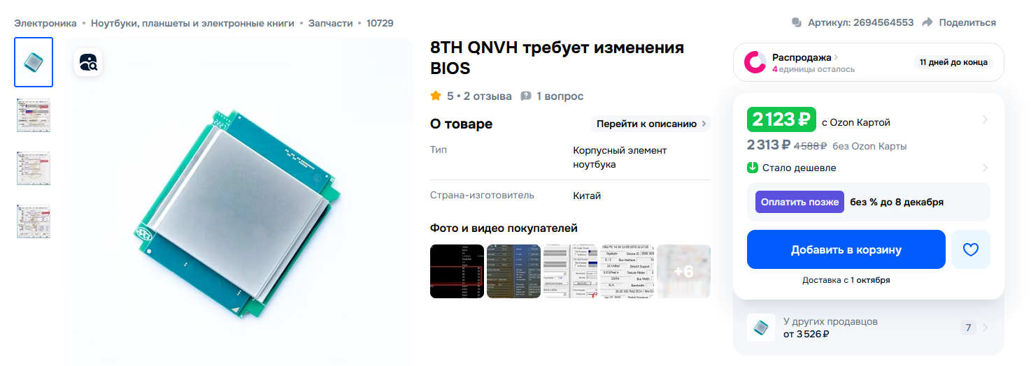 Для тех, кому по каким то причинам не нравится 1200 и 10400, есть варианты для 1151. Так на лохито стали всплывать 2136. Стоит от 4к. Примечателен довольно высокими частотами 4.2Ггц на все ядра, что всего лишь на 100 мегагерц ниже чем у i7-8700. Самый младший 6/12 кофизион. Проц без пинмода можно поставить в 1151в2, но модбиос нужен. На некоторые 1151v1 z170 платы от ануса для кофимода достаточно одной перемычки паяльником сделать. Ставить желательно на платы с более менее норм питальником. На н310/110 ставить бы такого не стал. В многопокпоке всего на 10% хуже cc150 (3.5x8 vs 4.2x6). Но однопоток лучше, в играх предположительный +- паритет. Стоит при этом ~1.5 раза дешевле. Возможно скоро и на алике появятся такие варианты, но это не точно. У чела с объявы было написано в наличии несколько. Но довольно быстро объява прикрылась. Либо все продал, либо у него и было их хуй да маленько. Продолжаю следить за кофи зионами.