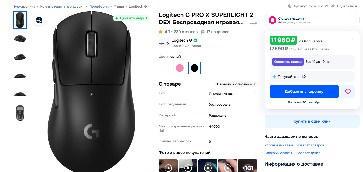 Мышебраться, посоветуйте мышь. Вводные данные такие: - Я скуф и последней удобной мышью, которой я владел, была конечно же X7 - Бюджет до 7к рублей (70 евро) - Мышь нужна под большую руку с длинными пальцами, хват ладонью или пальцами, неважно. - РГБ-подсветка, миллион кнопок и суперскорость не нужны, играю только в однопользовательские игры - Покупку буду списывать в налоги, так что покупать буду не на алике и маркетплейсах, соответственно, нужна брендовая мышка аля Logitech, Razer и т.д.