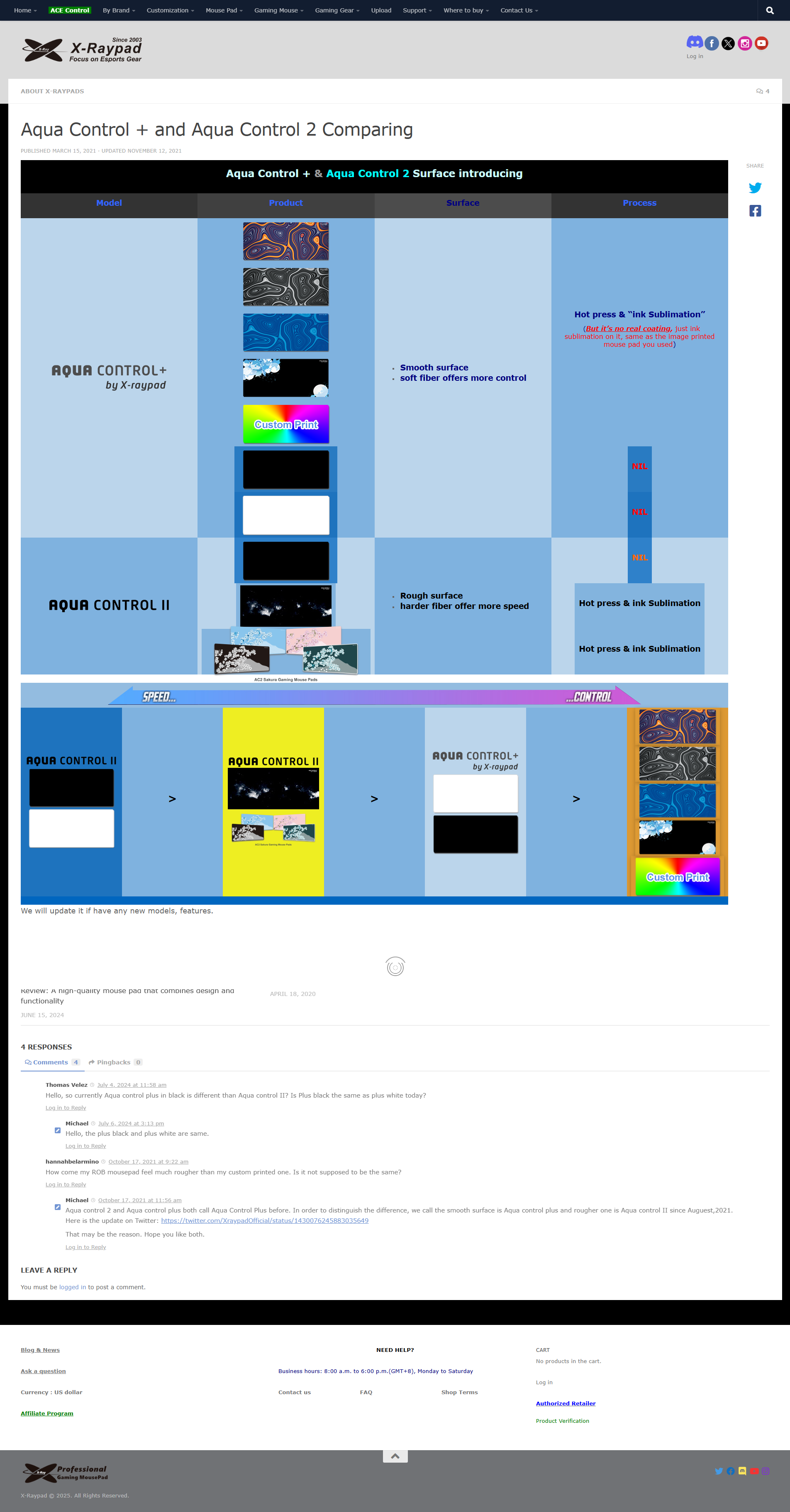 X-Raypad Aqua Control 2 Sakura FPS https://aliexpress.ru/item/1005004383846192.html 2889р с баллами в оф. сторе на Али, доставка 15-18 сентября, симпатичное. Много продаж/отзывов. Любим на реддите и али. > If you like speed look at what people think of eq v2 vs ac II, if you like more controls check ac+ vs ac0. По этой причине больше склоняюсь к Plus V2, я хз, такой ли я любитель скорости. Мне бы аимить сначала научиться. Хотя я совсем не шарю в типах ковров, помните об этом, никогда не владел ковром дороже 600р из мвидео. Ваша рекомендация из треда. Классика, говорите. Чуть больше в скорость вроде как. Тоже на 1к дешевле FF SVB v2. Также на тех же самых условиях в том же месте есть просто чёрная версия, без приписки FPS. Хз, различаются ли они ещё чем-то, или же только наличием рисунка. У первой версии продаж больше в 2 раза. Upd: На реддите увидел слухи, что сакура быстрее олл блэк версии. На деле же это наоборот, картинку с оф. сайта приложил. https://aliexpress.ru/item/1005004388038117.html А ещё нашёл на озоне сильно дешевле, но то ли это v1, то ли вообще хз, вызывает подозрения https://www.ozon.ru/product/x-raypad-igrovoy-kovrik-dlya-myshi-l-chernyy-cherno-seryy-1900154530