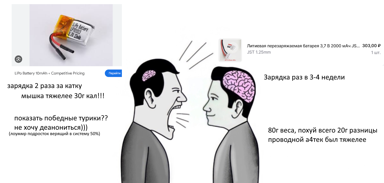 >>7497711 (OP) Кто-нибудь пробовал заменить аккумулятор мыши на более мощный? 1) А не ебанёт ли? 2) есть ли какой-то предел для контроллера заряда? 3) Разъёмы разные