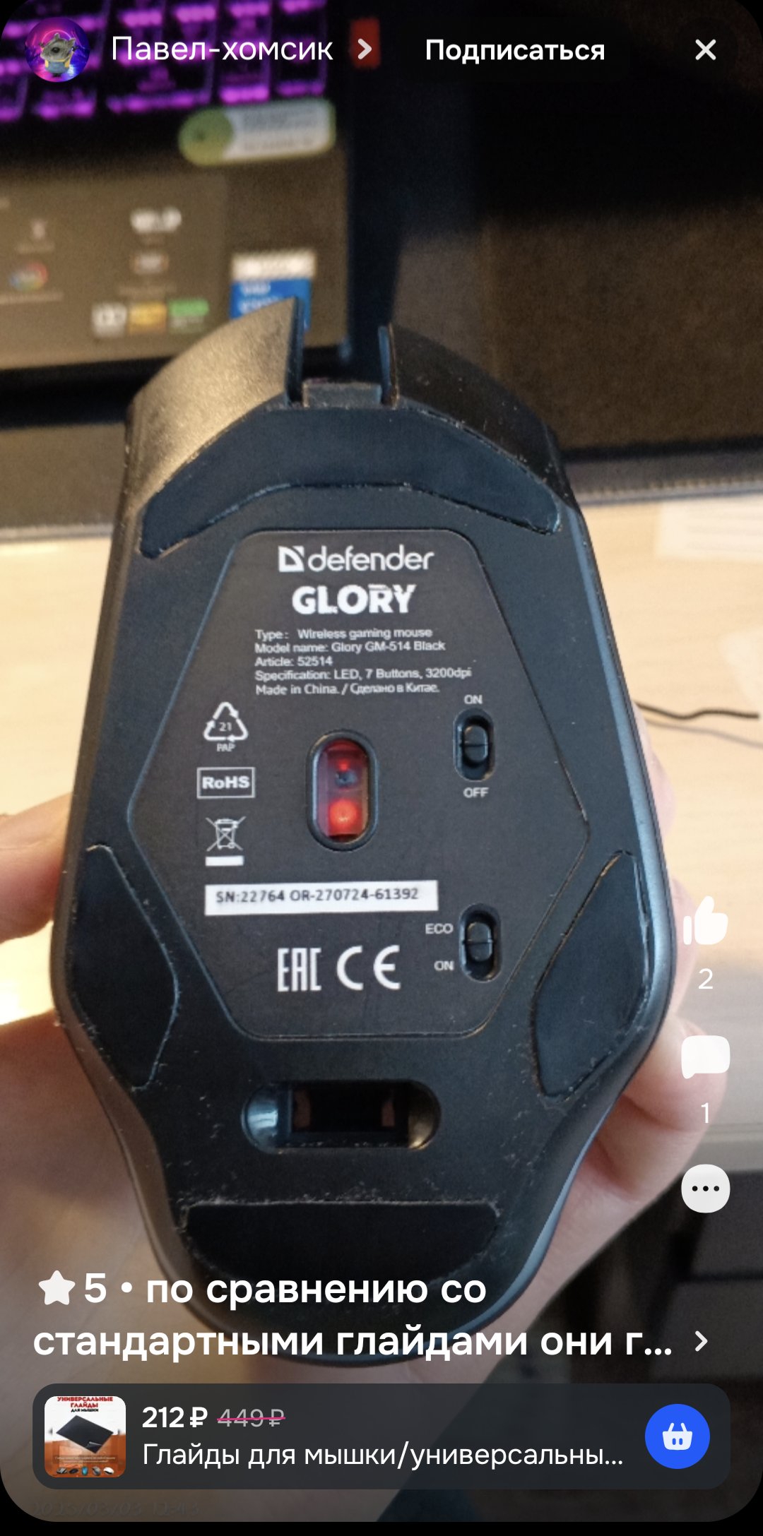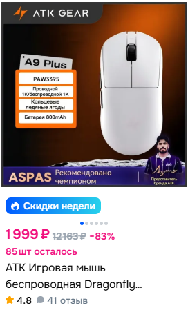 Юзаю давно VXE R1 Pro Max, с релиза купил. Недавно взял R1 SE+ с акумом на 500 махов. Покрытия нет, пластик даже лучше чем в старшей версии. Акум живет пока подозрительо долго. Дно ровное, цена была 1000 рублей с газона с оф магазина АТК. Софт видит, сенсора хватает за глаза. Я в ахуе как далеко шагнули китайцы в производстве периферии. А новая магнитка АТК Hex80 видели? Разъеб за 11-12 тысяч. Пиздец...