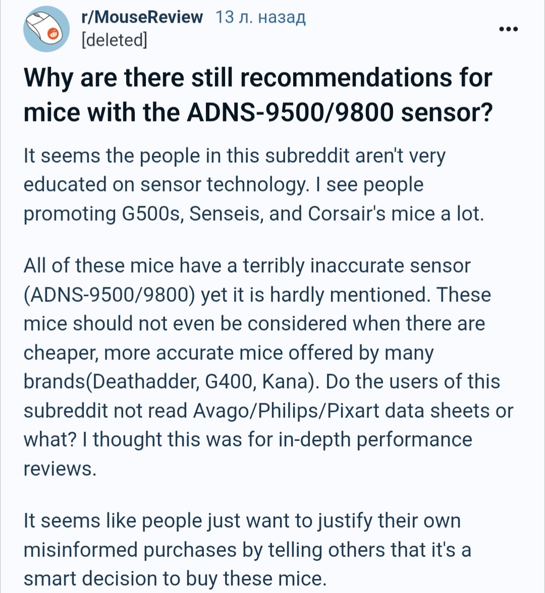 9 лет назад реддит в курсе проблем аваго лазеров, вот ещё пост 13 лет назад, нахуя покупать мышь с ускорением и замедлением? Основная функция передвижение курсора проебана