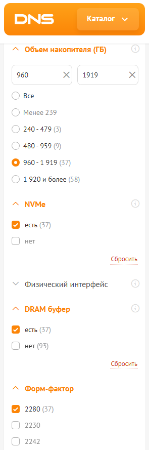Из 2.5 SATA годные это 870EVO, KC600 и 230S. Остальное рандом. Вот так галочки выставь и получишь список нормальных моделей. З 8т.к. увы, только спорная адата.