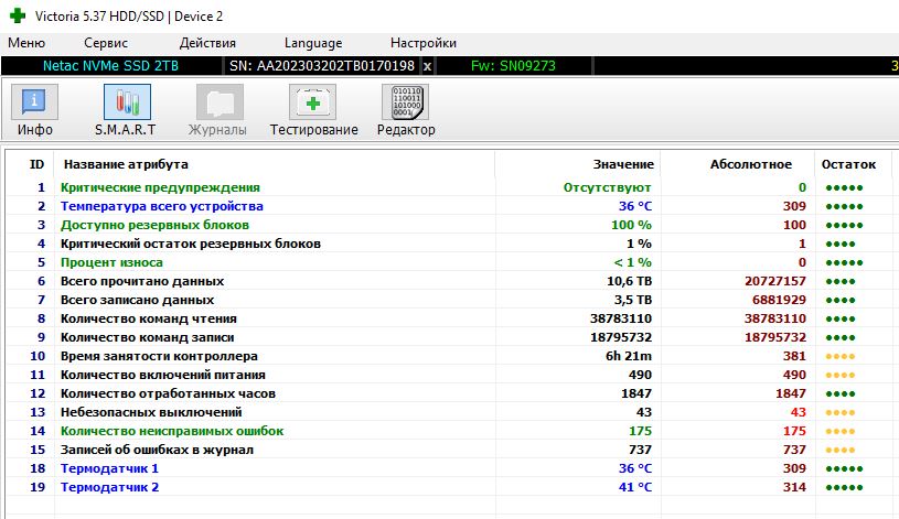 При вопросах о состоянии ссд по смарту переключай программу Crystal DiskINFO в десятичный режим! (ОП-пик №2)