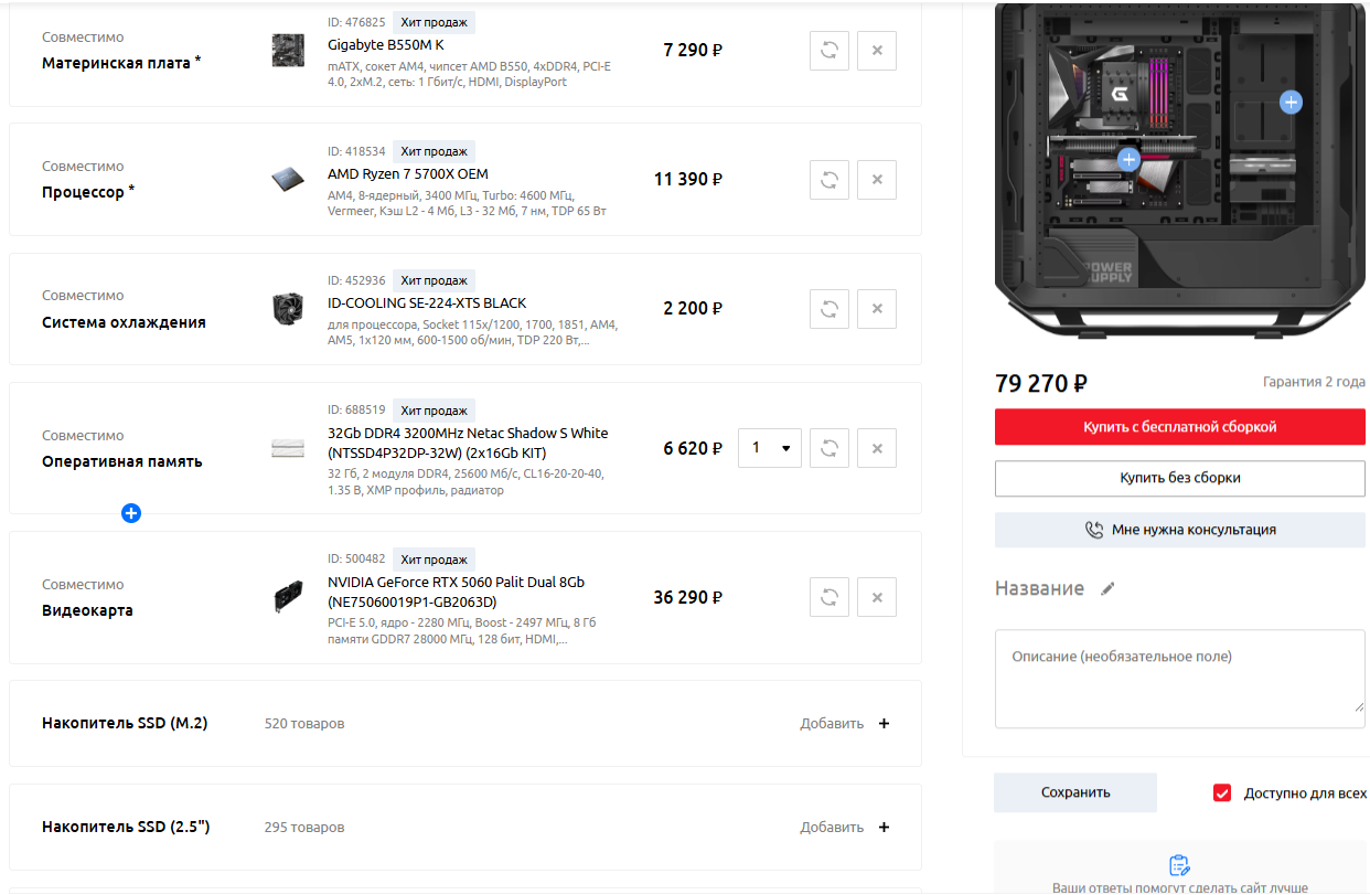 >>7513054 Чет блет дорого дофига, еще и за не самое новое железо. Вроде недавно подбирал похожий конфиг за около 100к, но с 5060 и Ryzen 5600. Справа общая цена, слева комплектующие, или как?