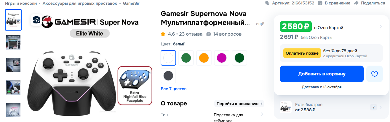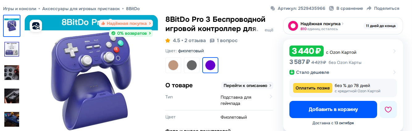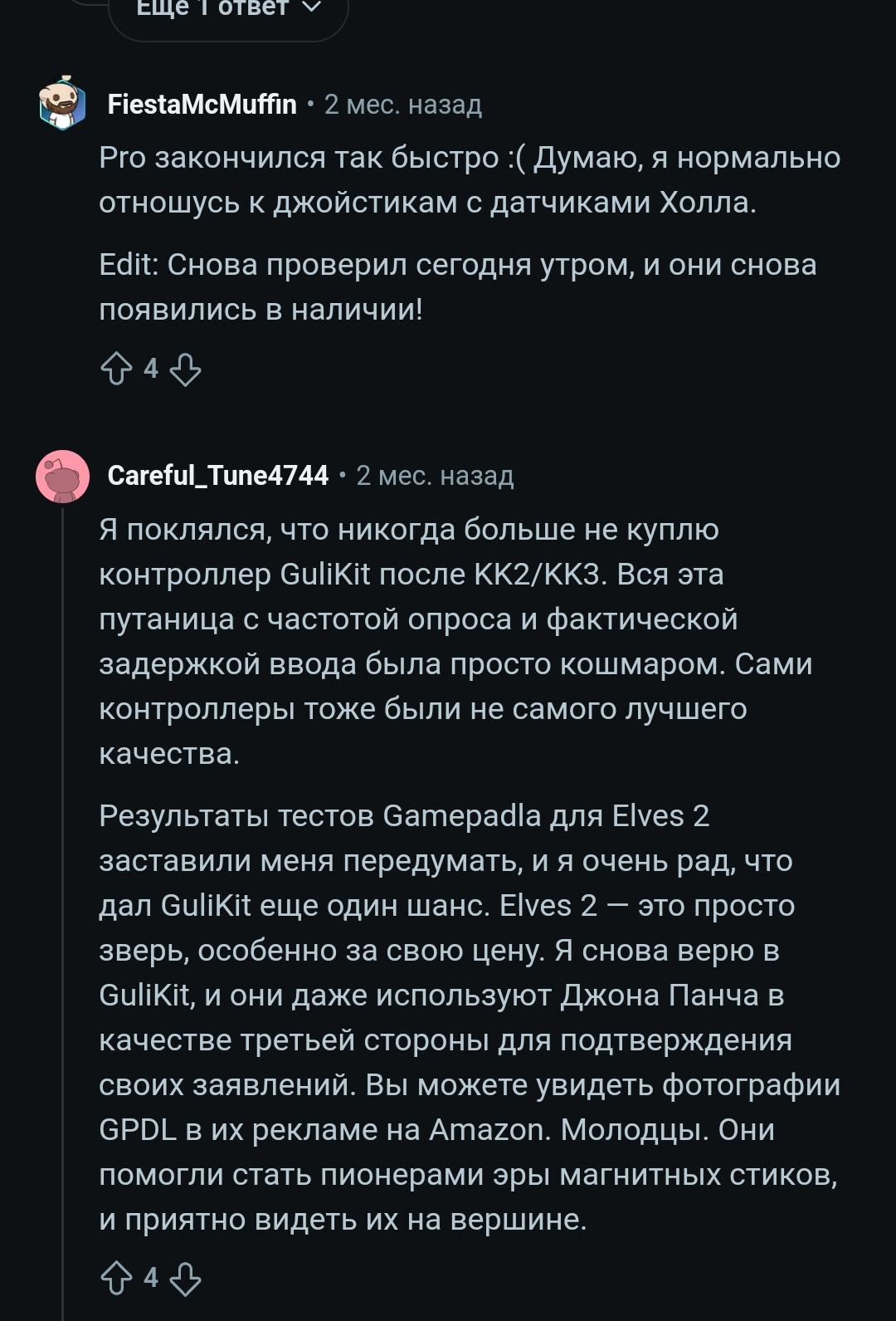 А так - на асимметрии есть 8bitdo Ultimate 2c/3 и Gamesir G7 pro за те же бабки. Из симметрии ещё вот Gamesir Tegenaria как-будто, поинтереснее даже будет в плане эргономики, чем pro3. Но не помню, что там по задержкам у него.
