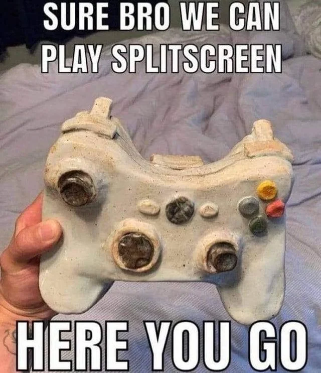 >>7519583 Сук каждый раз в голисину с этой пикчи))) Симметричные пады в плане удобства тоже не особо универсальные, если в те же гонки играть, например. Но иметь два пада - это база.