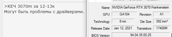 КЕЧ 3070m за 12-13к Могут быть проблемы с драйверами. А 3066м просто говно.