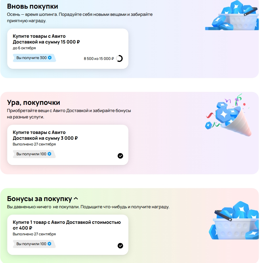 Скидка от продавца "на доставку" не стакается с получением бонусов, можно только потратить, если такая плашка стоит(и продавец сам ее поставил, а не акция авито) то можно попросить перенести эту скидку в тело самого объявления, в таком случае будет профит в бонусах(получить или по максимуму списать фантики).