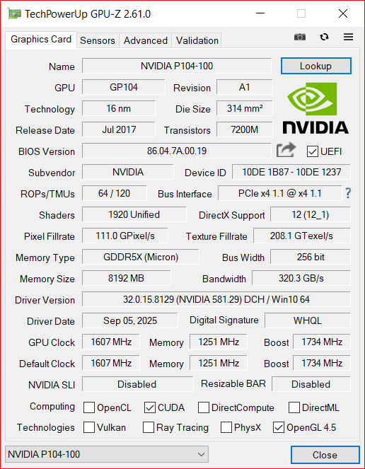 Драйвера встали. Карта определяется в диспетчере устройств и в гпу-з как p104-100, в хв инфо как cmp4-1. Патчи пока не ставил, просто проверил встанут ли дрова. Если драйвера встали значит карта живая, так ведь?