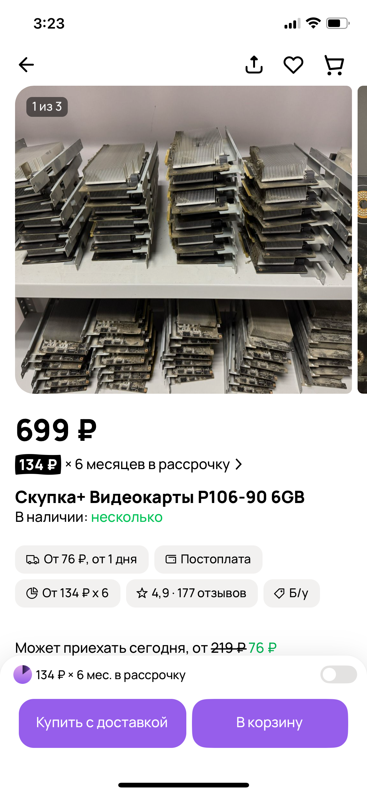Кстати забыл упомянуть, что п106-100 "на распродажах" можно урвать сильно дешевле комплекта с рыксой. Видел отдавали по 900р с кулерами, а я урвал по 500 без кулеров, а это пиздец как дешево для конечной сборки.