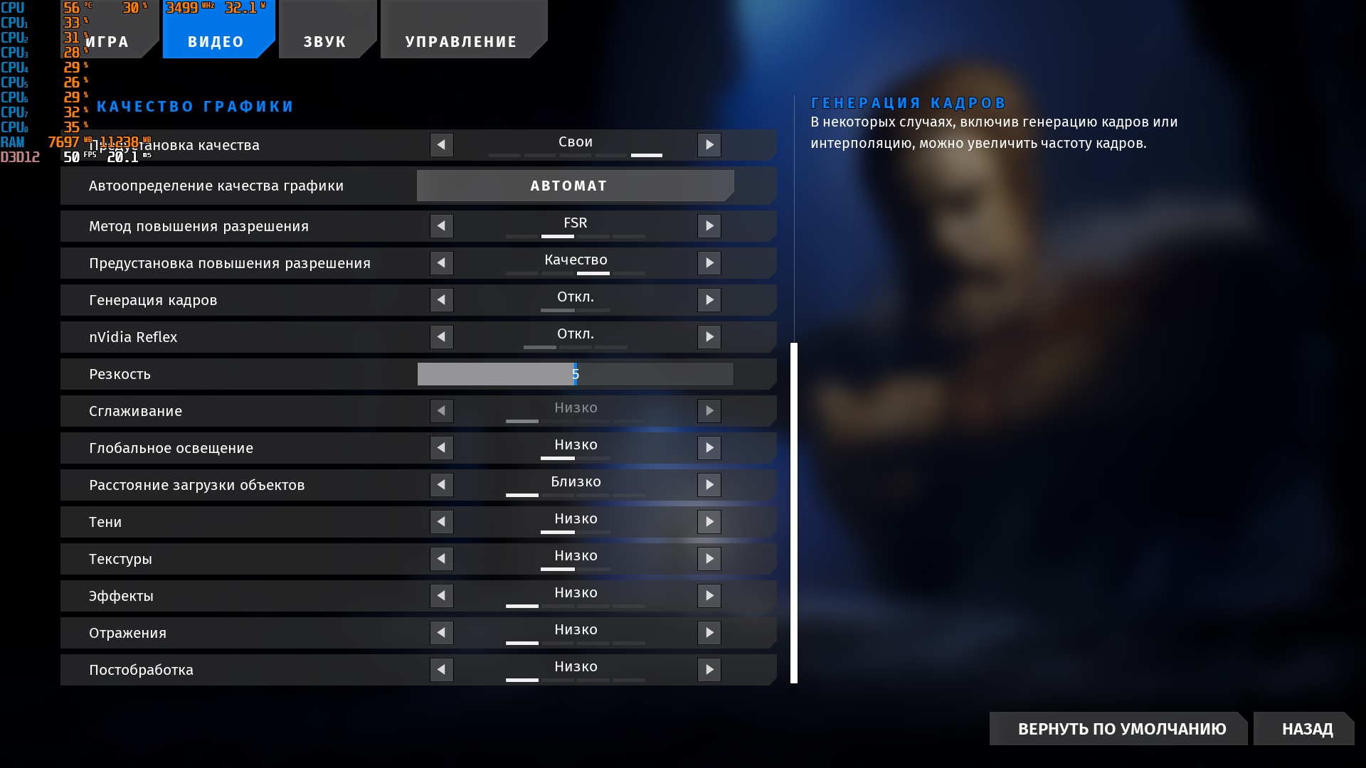 >>7533431 Попробую запустить что-то по свежее. Второй талос. Игра прожорливая. Ну оно и понятно УЕ5. Но запустилась, хоть и на минималках. Выдает 45-50 фпс максимум. фср качество + минималки. Снижение фср до баланса и производительность не дают какого-то эффекта. И тут скорее всего уже упор в пси-е х4 1.1. Но пройти игру вполне можно и на х4. До этого я запускал эту игру на 1060/470. Там на фср производительность + минималки только 30 фпс было. Так что смп 30 лучше даже с такой шиной. Далее запустил геншин. На высоких не более 50 фпс. Снижение настроек тоже ничего не дает. И тут уже 1060 и 470 будут прилично лучше, они тянут игру в 60+ кадров на ультрах, ибо нет ограничения по шине. Что ж карту обазятельно придется допаивать до х16 и протестить еще раз. На данный момент выводы делайте сами. По мне так вариант неплохой, но с нюансами. Причем, если вы игрок в арех, фортнайт, скорее всего в новую бф6 - то с этой картой точно пролет. Для сингов вполне сойдет, при наличии х16. На одном стриминговом сервисе увидел пекарню с смп 40. и Список игор, которые на ней работают, по позже скину в тред. То есть и на смп30 они тоже скорее всего будут работать.