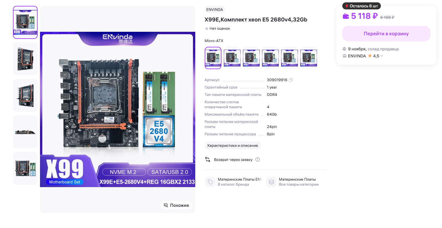 >>7533509 >это единственный не китайский и не пердольный Есть не пердольный 2011-3 с 2643в4, который спокойно потянет 3070м, буквально заказал весь комплект одной кнопокой за ~5к и можешь сразу играть, ничего прошивать не нужно. Хейт китай-плат по большей части надуманный. Окей, не хочешь Китай, есть 1151, да нужно иметь программатор, приедется вместо тиктока смотреть видео на ютубе\читать гайд. Ок, не хочешь Китай и не хочешь пердолится, в шапке для таких есть 12100ф, да, комплект на нем будет в два раза дороже, но он и лучше в два раза, нахуй этот 1150?