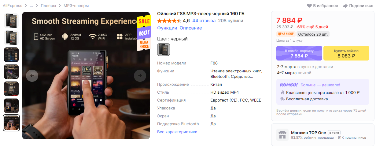 Итого: плеер 105 рублей, штука 300 рублей. Понятно, что сейчас наляетят коршуны, которые покупают плееры за 120 млн рублей, слушают треки только в качестве ультра гипер нано лослесс с виниловых пластинок с алмазным покрытием, и все же, делюсь.