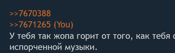 Вырожденец с аниме автатаркой, отматываешь несколько постов выше и слушаешь. Если ты не слышишь ничего, мне тебя жаль, если слышишь, то заканчивай юродствовать и оправдываться.