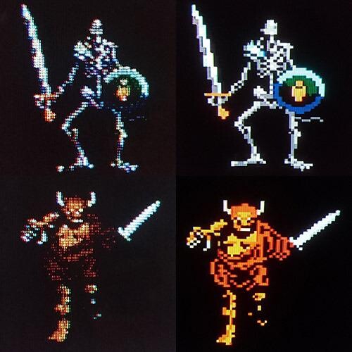 Алсо, если кто не в курсе, эффект подобный этому и пику в ОП посте это не особенность ЭЛТ как таковая. Это грязные хаки косяков композитного подключения и особенностей телевизоров, благодаря которым можно было выжать даже чуть больше цветов чем могла показать сама сонсоль. Посмотрите, например, на глаза снизу на первом пике, никакой ВэГэА црт моник вам не размажет один яркий пиксель в линию.