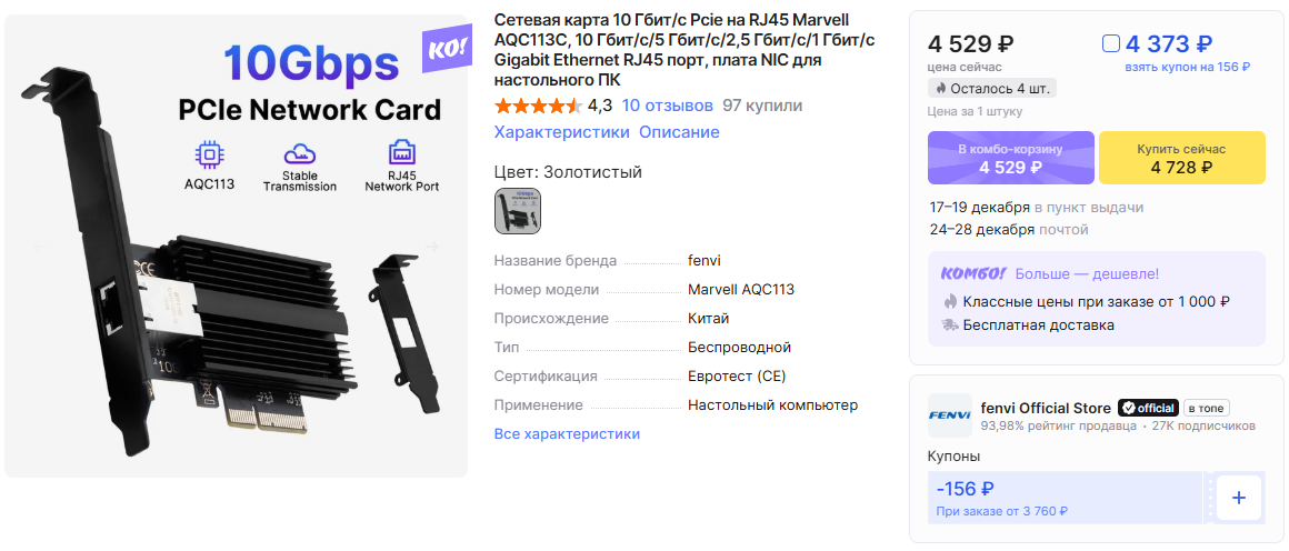 >>7587370 Ну с эзернет портом (для дома самое то) чёт карточек не очень много. А смысл покупать SFP карточку, а потом к ней ещё и модуль за 4500, в чём профитность тогда?