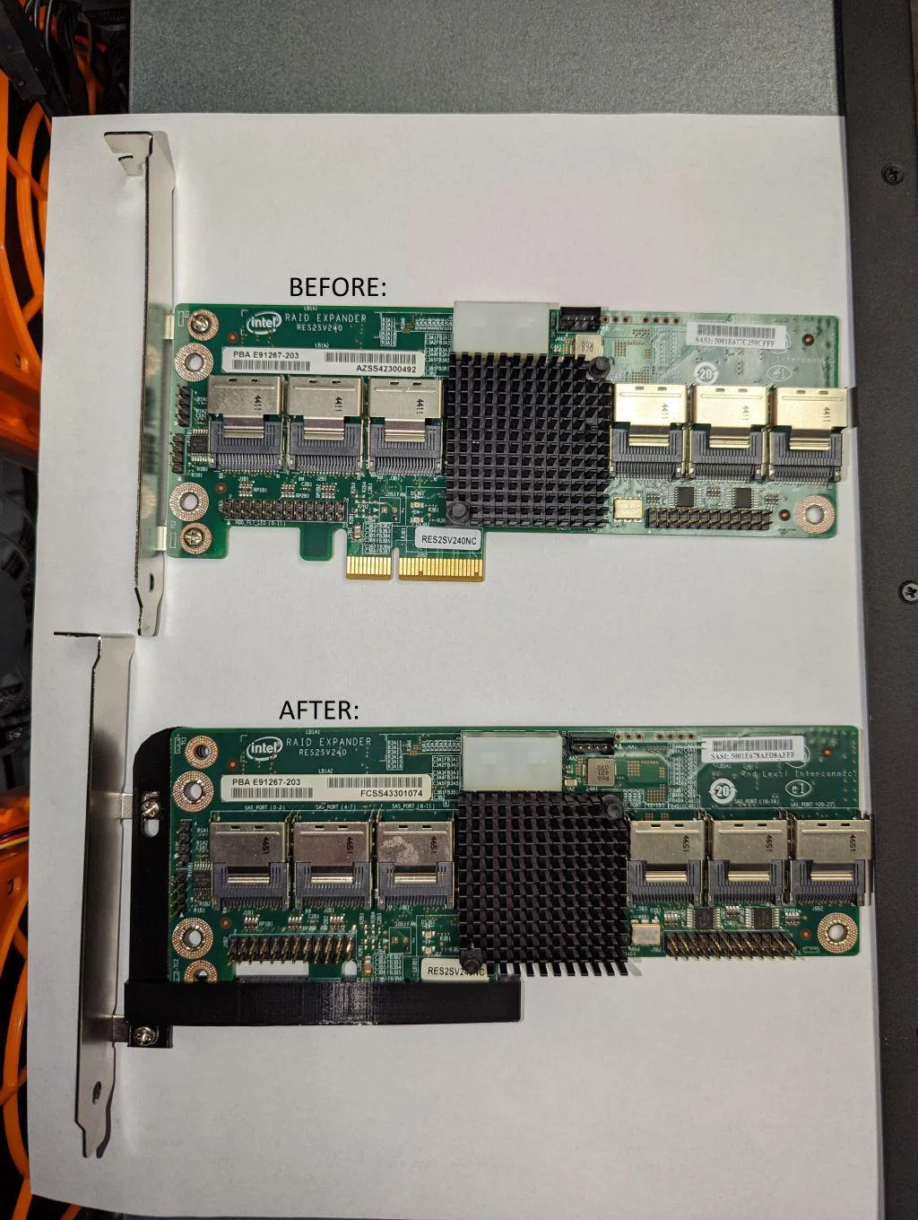 >>7596557 >Тысяча точек отказа А колхоз с закреплением экспандеров типа пикрелейтедов это, конечно, не точки отказа, а продакшн реди солюшн. Думать куда бы их прикрутить, особенно в обычных корпусах, и как бы изолировать чтобы потом в будущем случайно не замкнуло, а в случае если экспандер идет с pci брекетом, то как бы закрепить его так, чтобы питание было исключительно по sata/molex, а не через материнку, ведь даже его простая установка в слот может повлечь за собой изменение режима работы других pci-e слотов. inb4 надо просто покупать проверенные временем серверные материнки с кучей pci-e линий или фирменные серверные корпуса где под экспандеры есть специальное место.