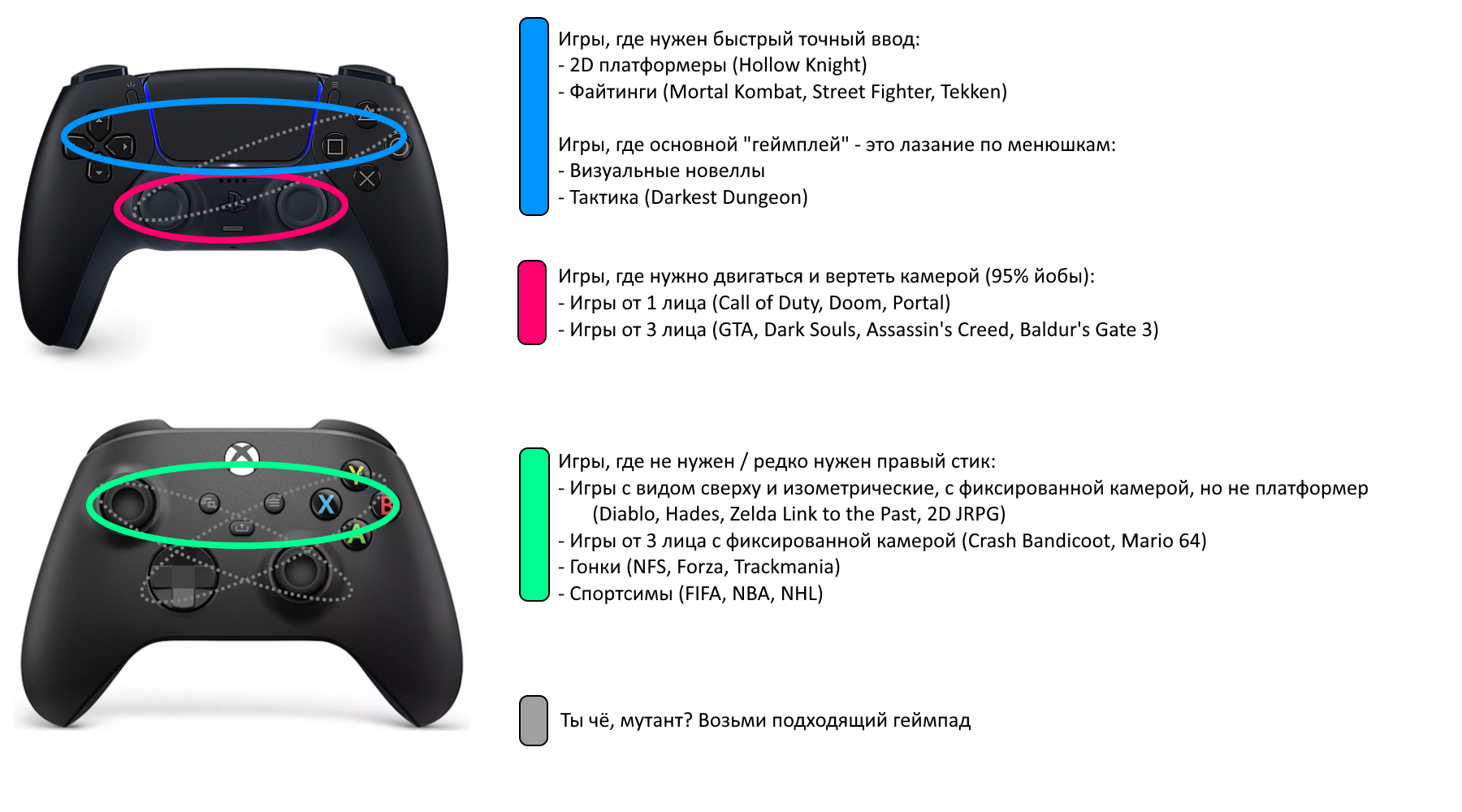 >>7537805 Я почти не играю в то что ты указал. У меня геймпад под мультиплатформу и эмуляторы относительно современных консолей(PS2/Dreamcast/Gamecube максимум, но чаще не старше PS3). Платформеры играю, но стиками.