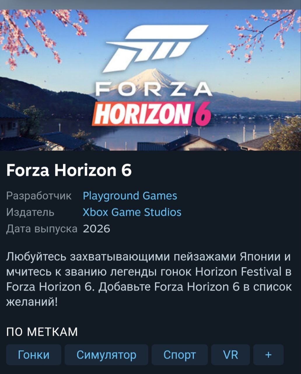 >>7533147 Четверка база, двачую адвоката. Но там туды-сюды уже и Forza Horizon 6 в Японии выйдет. Если не обосрутся, то должно получиться чистейшее дофаминовое ширево. Дальше уже тянуть с нипонией нет смысла, потому что иначе ЦА перегорит.
