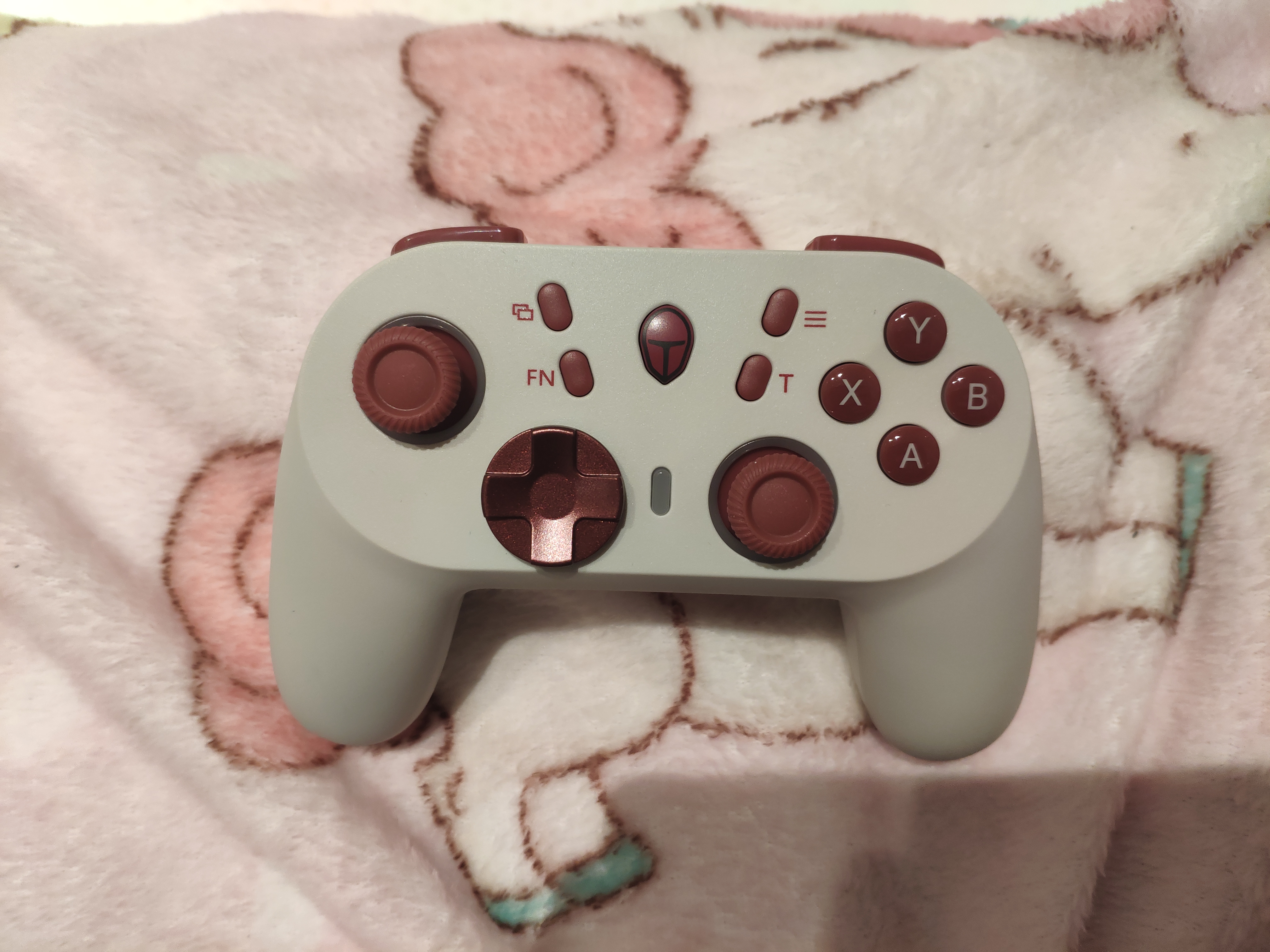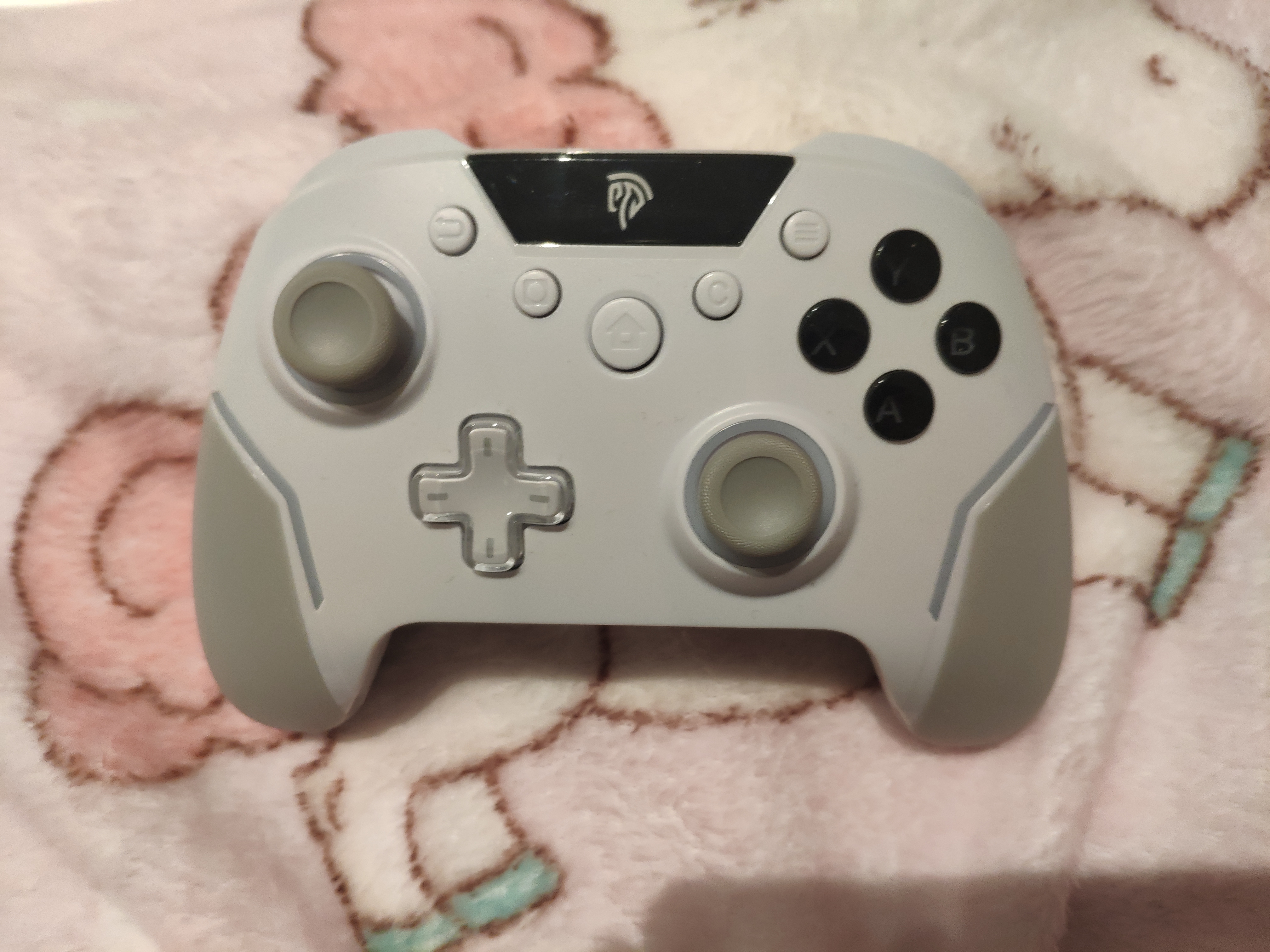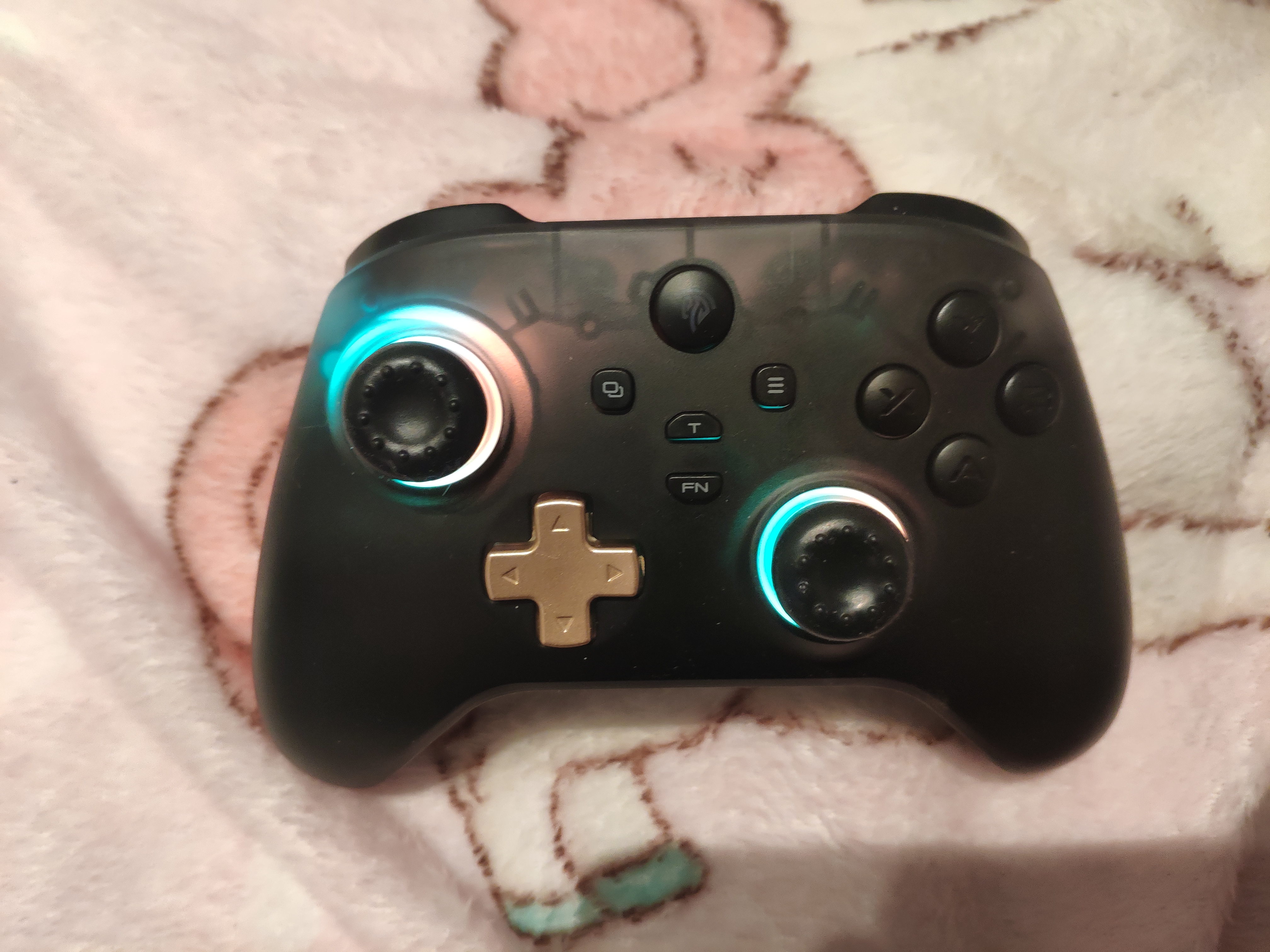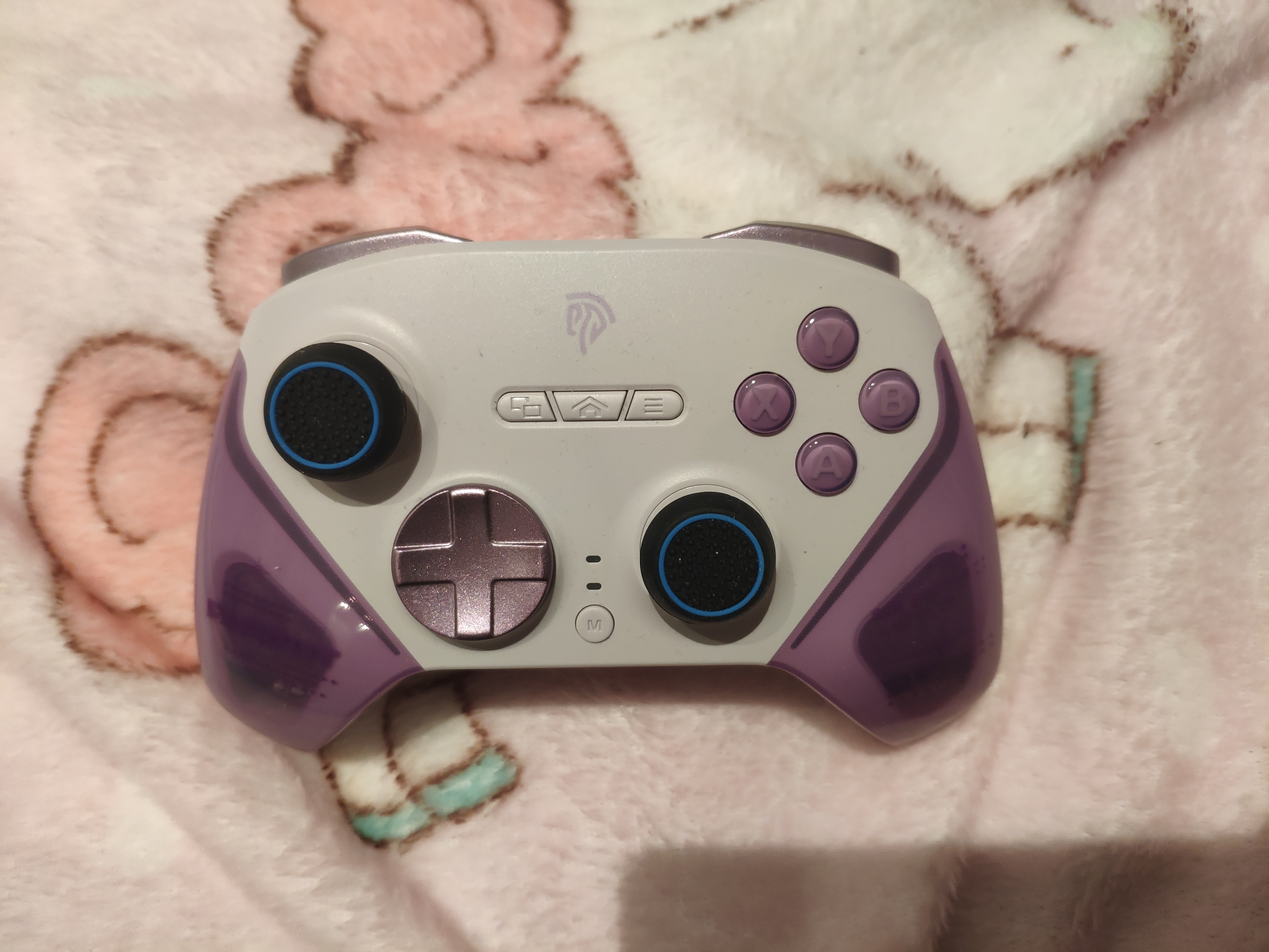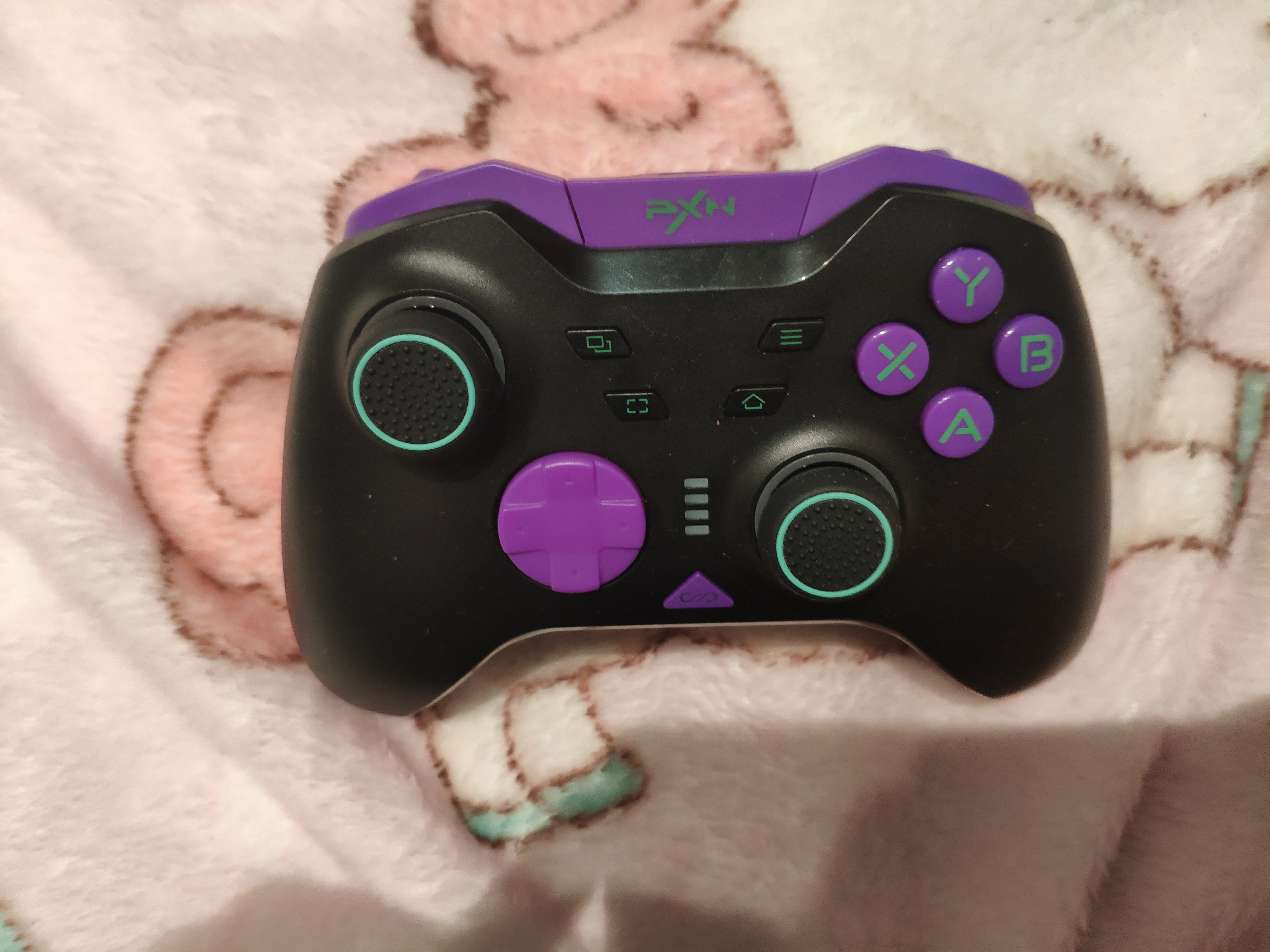 Если коротко - киберспортивный геймпад в корпусе от геймкуба. Сразу начну с минусов - кликающие кнопки. ABXY, L, R, ZL, ZR и две программируемых задних - микрики, крестовина просто жесткая, кликающая, но скорее просто очень грубая мембрана. В комплекте У МЕНЯ были сменные области для стиков (ну то есть то пространство, в котором стик двигается). На фото обычные, есть еще дополнительные восьмиугольные, как у оригинального пада (меняются просто прокруткой и выемкой, не сильно сложно). Я видимо заказал супердешевую версию, потому что у меня несменные шляпки стиков. У меня это просто монолитная пластиковая штука, а на ютюбе у чуваков шляпки снимаются и в комплекте шло еще три пары разных. Инструкции нет, ссылка на инструкцию QR-кодом ведет в онлайн-библиотеку, в которой нет этого геймпада. Поэтому пришлось искать информацию из инструкций других геймпадов производителя (получилось что Y+Home коннектит в режиме свитча, а X+Home в режиме боксопада). Также долго ебался с тем, чтобы отключить подсветку на геймпаде, потому что кнопа выключения просто переключает цвета, какое-то сочетание включило вообще режим "дыхания", но по итогу получилось.