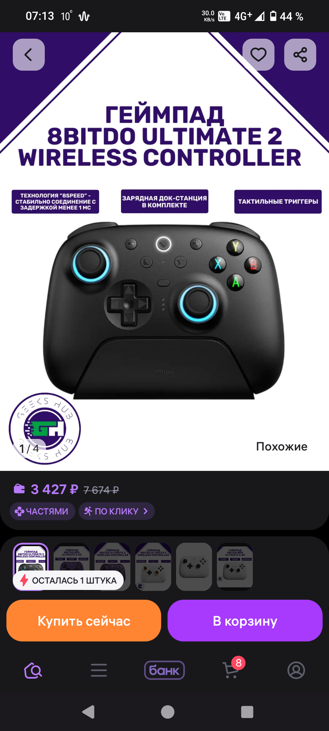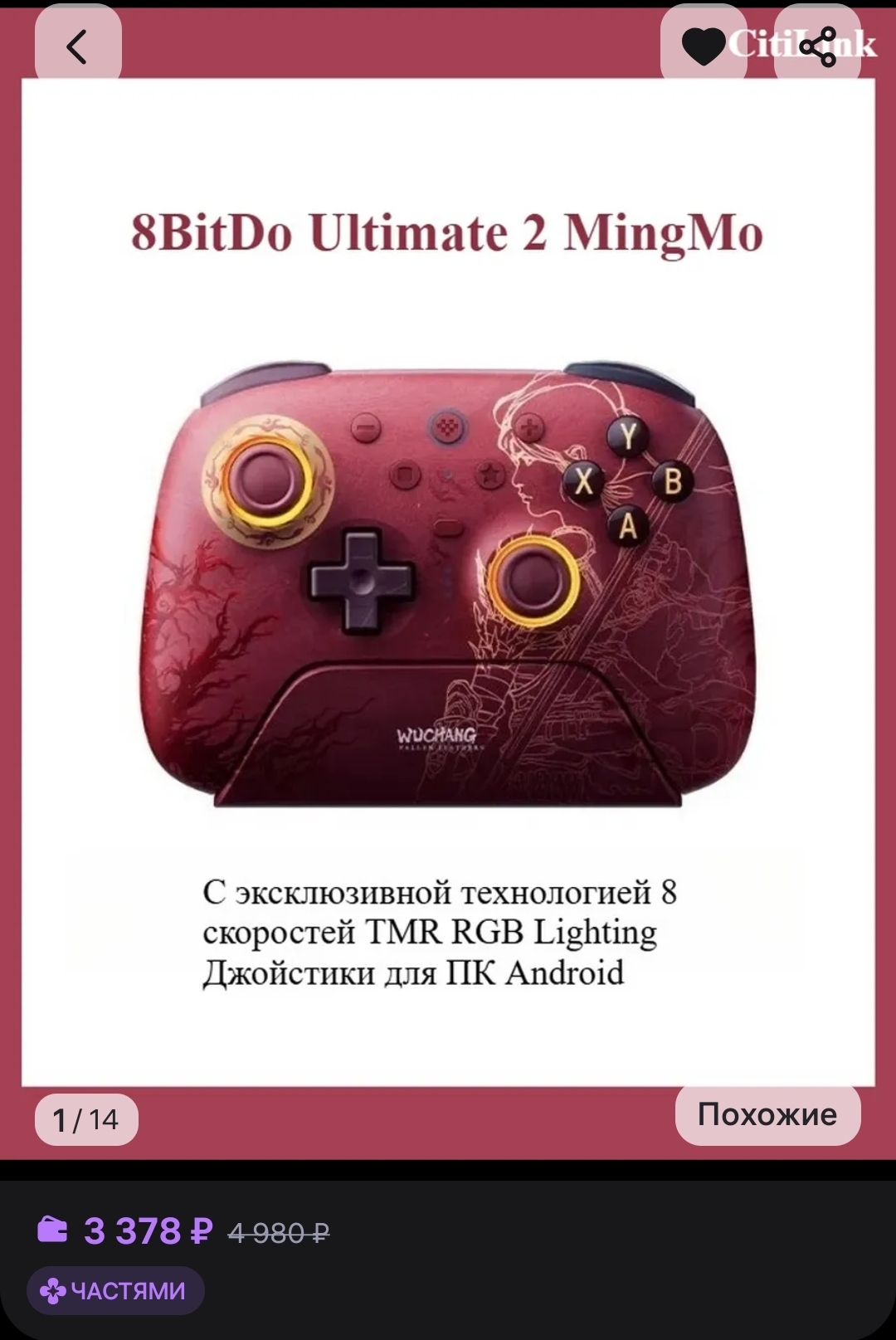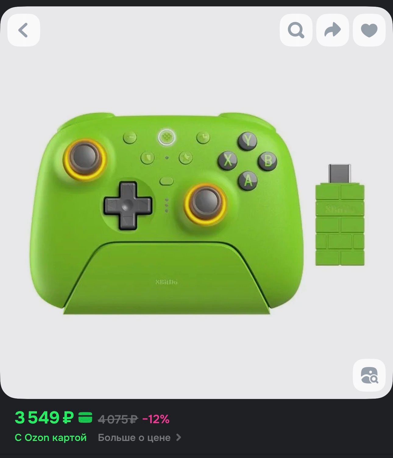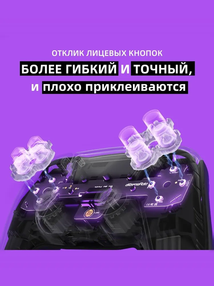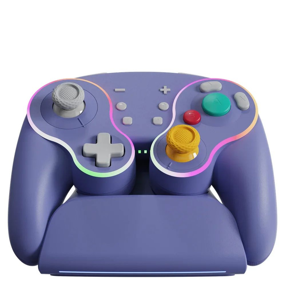 Если коротко - киберспортивный геймпад в корпусе от геймкуба. Сразу начну с минусов - кликающие кнопки. ABXY, L, R, ZL, ZR и две программируемых задних - микрики, крестовина просто жесткая, кликающая, но скорее просто очень грубая мембрана. В комплекте У МЕНЯ были сменные области для стиков (ну то есть то пространство, в котором стик двигается). На фото обычные, есть еще дополнительные восьмиугольные, как у оригинального пада (меняются просто прокруткой и выемкой, не сильно сложно). Я видимо заказал супердешевую версию, потому что у меня несменные шляпки стиков. У меня это просто монолитная пластиковая штука, а на ютюбе у чуваков шляпки снимаются и в комплекте шло еще три пары разных. Инструкции нет, ссылка на инструкцию QR-кодом ведет в онлайн-библиотеку, в которой нет этого геймпада. Поэтому пришлось искать информацию из инструкций других геймпадов производителя (получилось что Y+Home коннектит в режиме свитча, а X+Home в режиме боксопада). Также долго ебался с тем, чтобы отключить подсветку на геймпаде, потому что кнопа выключения просто переключает цвета, какое-то сочетание включило вообще режим "дыхания", но по итогу получилось.
