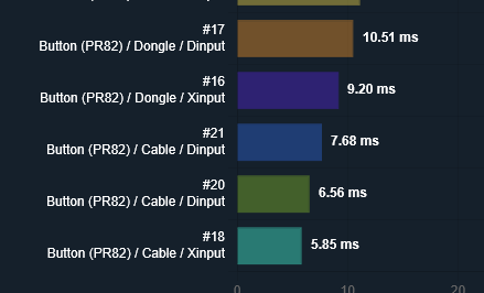 >>7539272 >>7539317 dinput это по блютус с пк 6-10 мс, для обоссаного блюпупа это норм >А вот частота 250 Гц по свистку уже ничего не исправит тебе зачем больше? чтобы что?