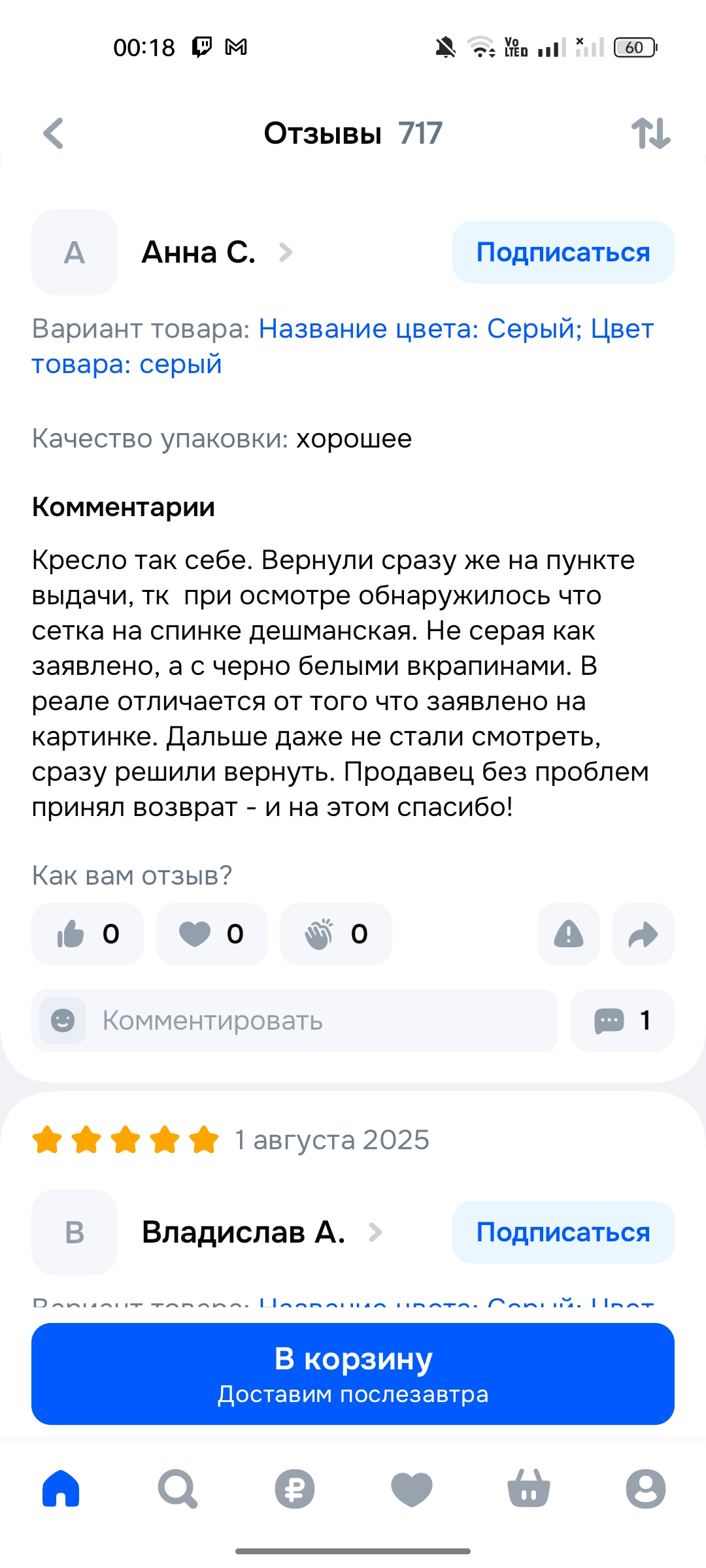 На моем опыте негативные ревью кресел всегда совпадали с реальностью, а вот позитивные наоборот. Даже по логике никто не станет заказывать антирекламу какому то стулу ведь их миллион на рынке, разоришься, проще заказать рекламу своему стулу, нагнать ботиков/скуфов писать позитивные ревью за 5 рублей