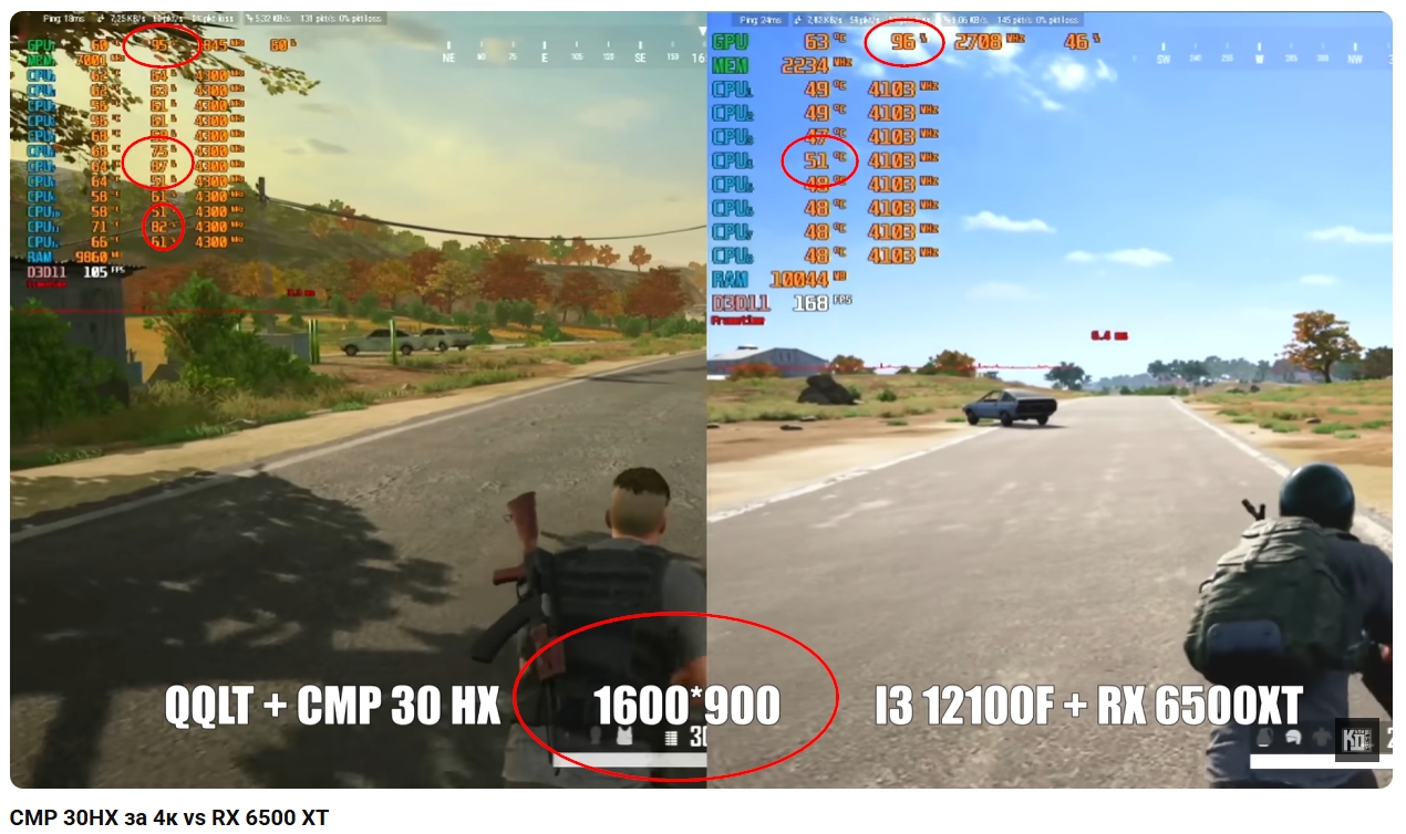>Но по серегиному видео прекрасно видно >Особенно в играх с высоким фпс, то есть соревновательными. Провел расследование этого утверждения. Что 5500хт это как 6500хт, а тесты с 6500хт есть у продай-дорого. И по сути других аргументов нет. Котра2, действительно у 6500хт фпс больше, но видеокарты сильно недогруженные и в видео показан тест процессоров. Пабг, видеокарты имеют 90%+ загрузки, не полная загрузка. Процессоры показывают неравномерную загрузку по ядрам, что для пабга характерно, и имеет место быть упор в одноядерную производительность\пропускную памяти(кп), а так же видно, что идет разное видео(с разных каток) и возможно на разных настройках. Отдельно посмотрел сравнение процессоров в пабге, 12100ф за счет синглкора, заметно лучше 6тиядерника скайлейка. А вот ластуха упор в видюху, 41фпс против 31, это и будет реальная разница по видеокартам.